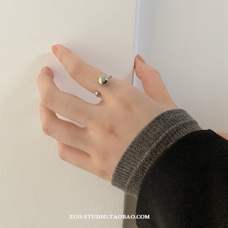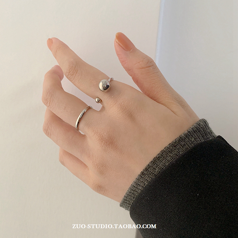 银色素圈几何圆球开口戒指套装女冷淡风气质指环时尚个性食指戒潮