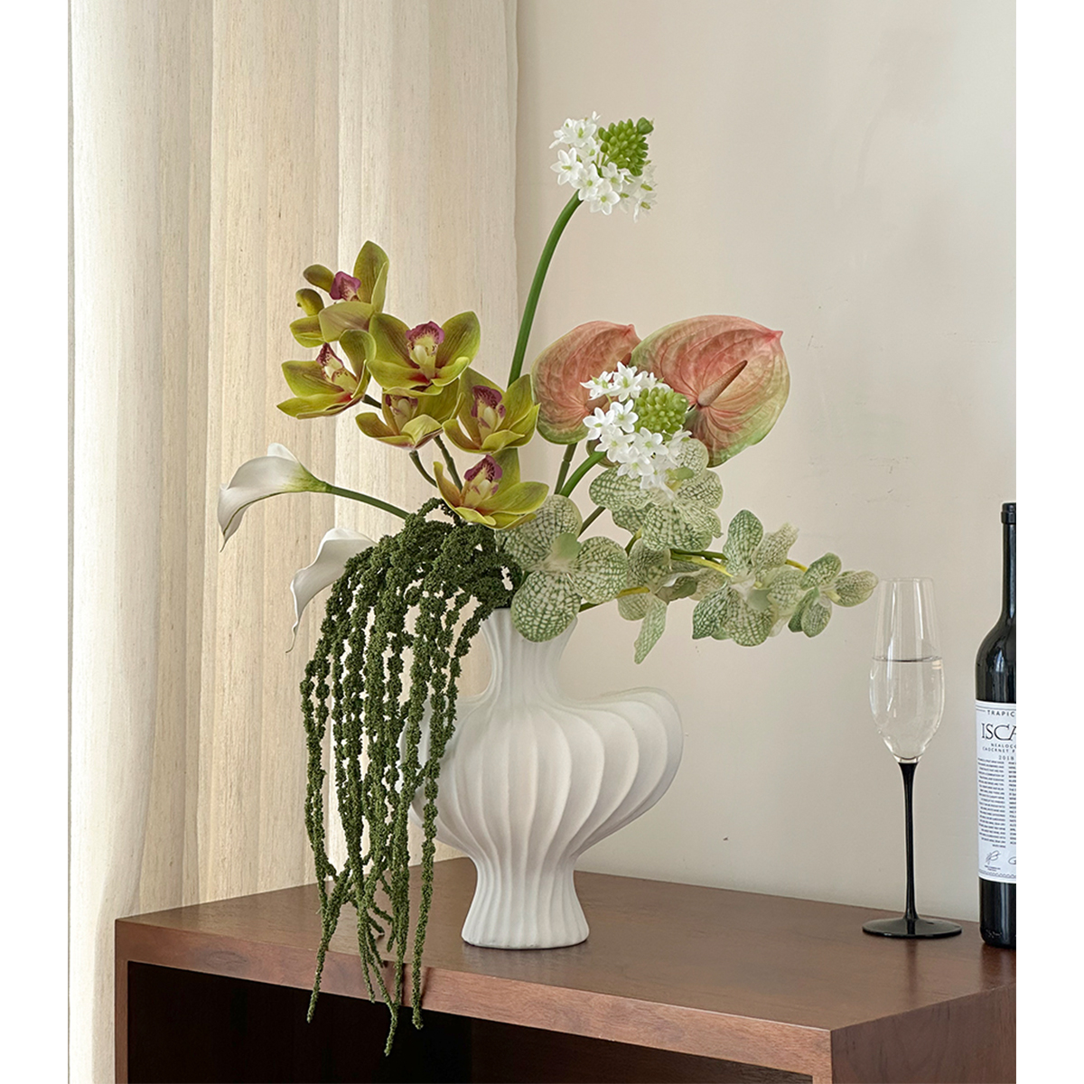 酒店大堂高级感陶瓷花瓶法式仿真花束前台轻奢客厅装饰摆件艺术