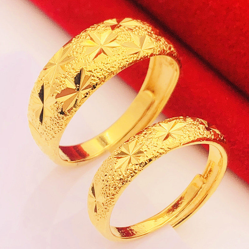 时尚沙金情侣对戒流星雨仿金铜镀金假黄金满天星光面戒指久不掉色