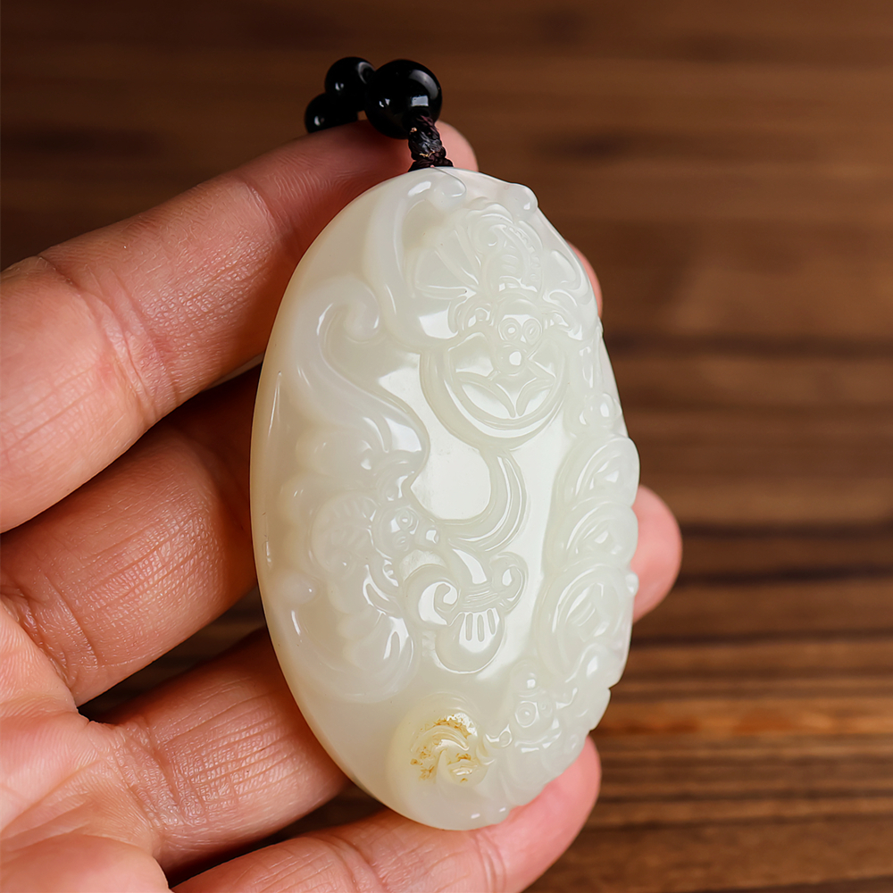 和田玉籽料福寿如意手把件招财纳福蝙蝠如意玉石把玩件挂件