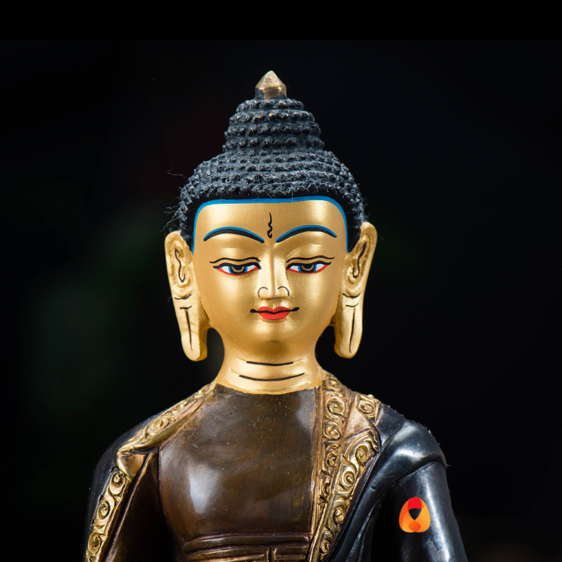 阿弥陀铜像7寸铜镀金尼泊尔室内家用客厅桌面三宝佛摆件