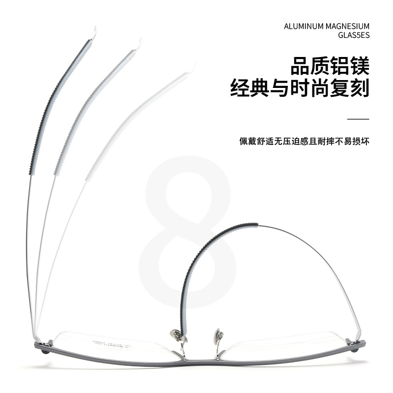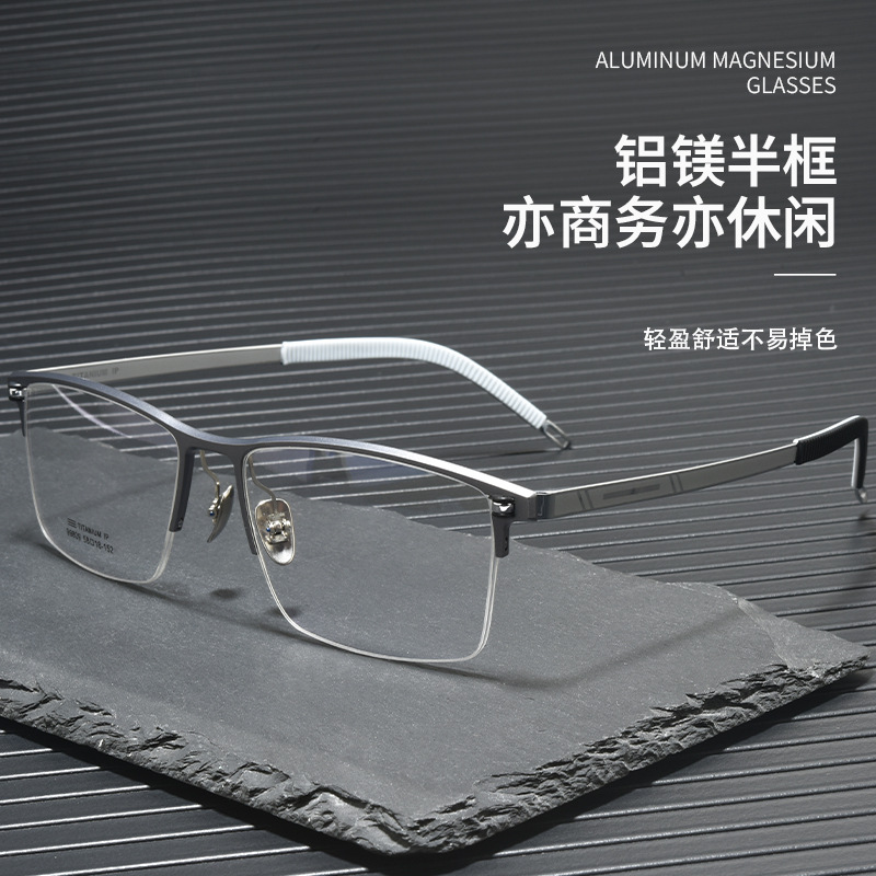 超轻合金半框商务休闲近视眼镜专业网上配镜近视可配度数防蓝光男