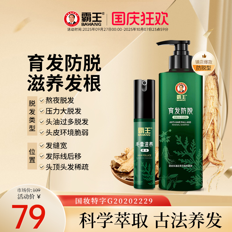霸王防脱发洗发水控油蓬松洗发露侧柏叶育发洗头膏男女生固发套装