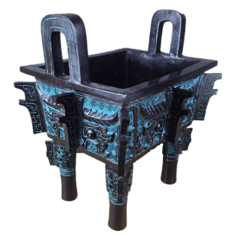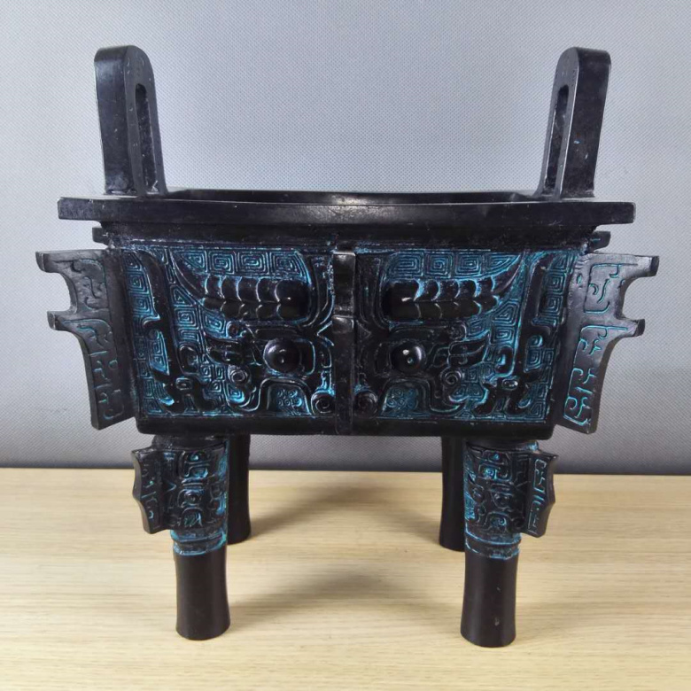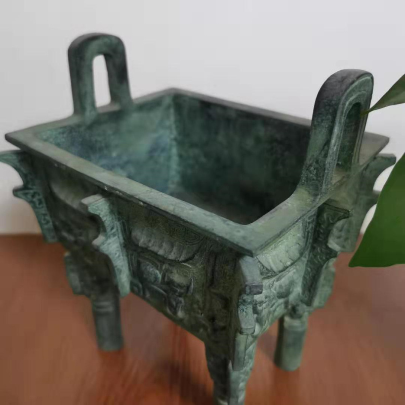 仿古青铜器客厅店铺复古摆件饕餮纹方鼎镇宅敬神古玩做旧包老礼品