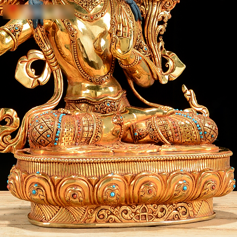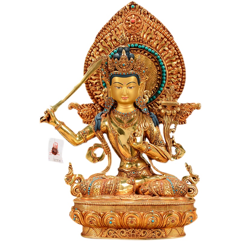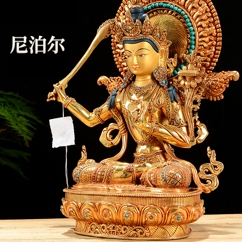 文殊菩萨尼泊尔手绘24K金彩绘面部精工铜居家桌面摆件15寸