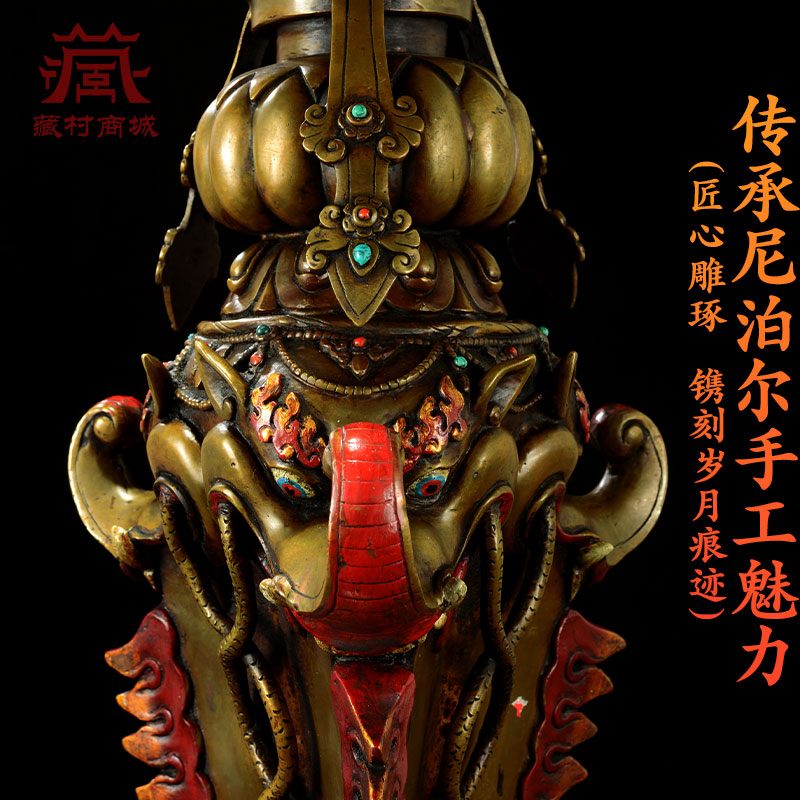 藏村尼泊尔进口牛头铜金刚撅室内家用金刚杵带底座桌面摆件
