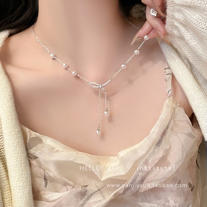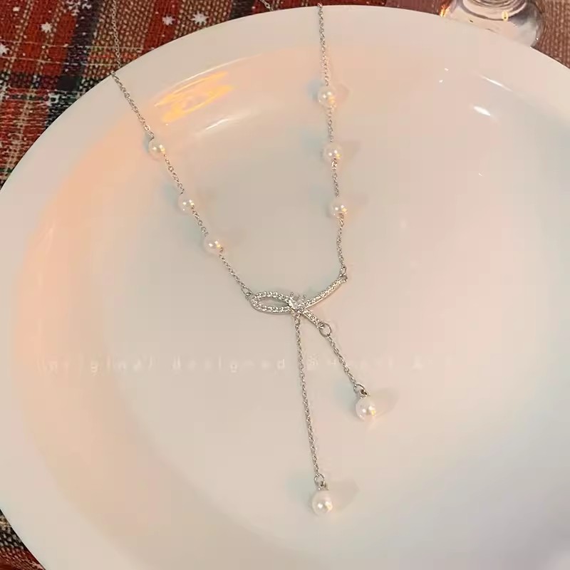 蝴蝶结珍珠流苏项链女款2024新款爆款颈链夏轻奢小众高级感锁骨链