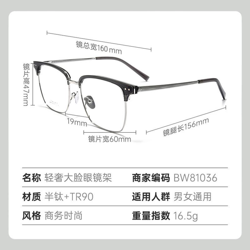 大脸男款眼镜160mm眼镜框钛合金超宽眼镜架胖子大码大框眼镜近视