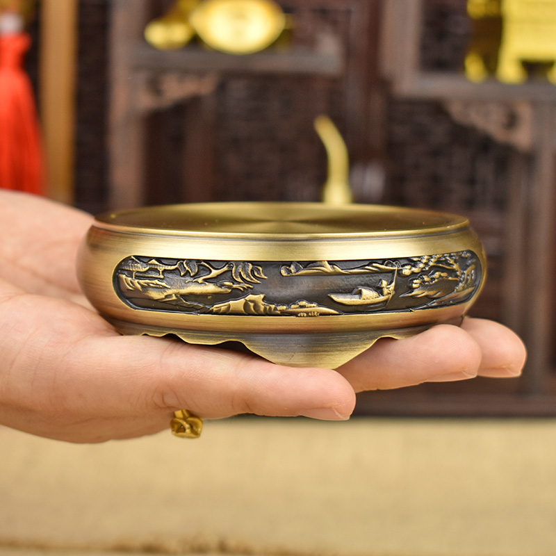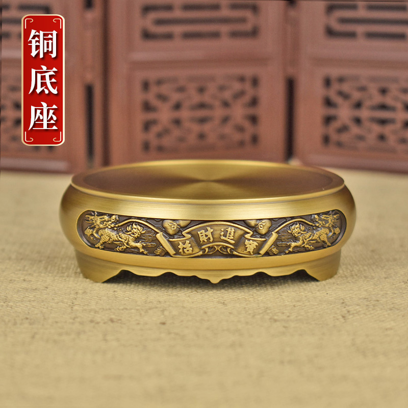 铜底座底托纯黄铜摆件莲花山水米缸铜缸文昌塔香炉圆形万能型通用