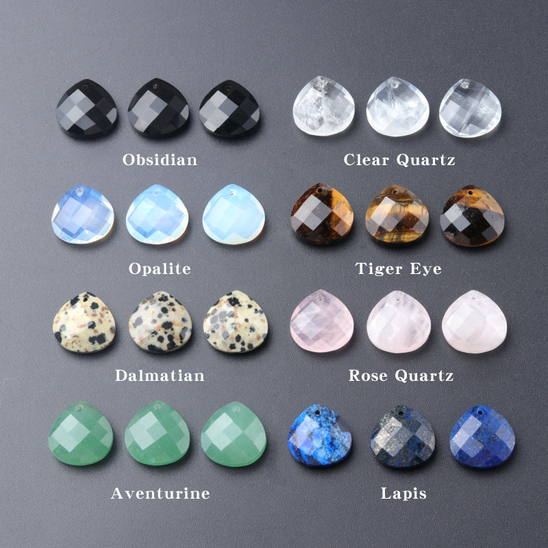1622-天然水晶石头切面面孔三角水滴吊坠diy项链耳环饰品挂坠配件
