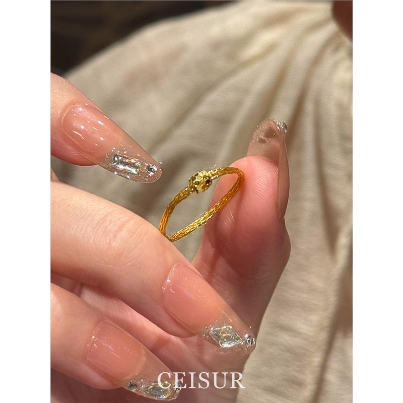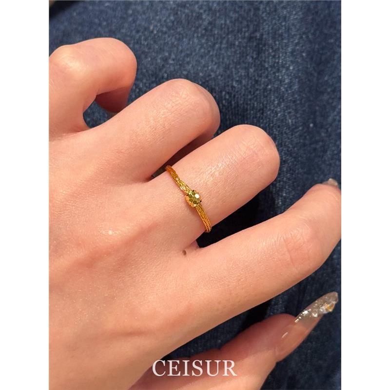S925纯银金色爆闪碎冰冰素圈戒指女小众设计简约高级感食指戒指环