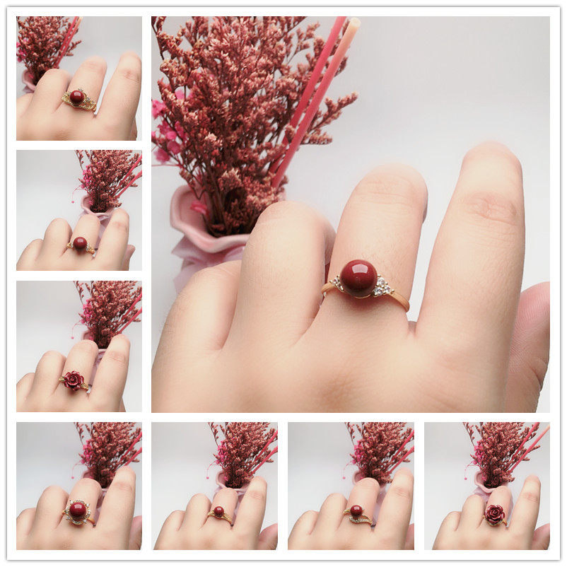 天然朱砂戒指女款情侣对戒开口可调镶嵌指环饰品尾戒小众设计手饰