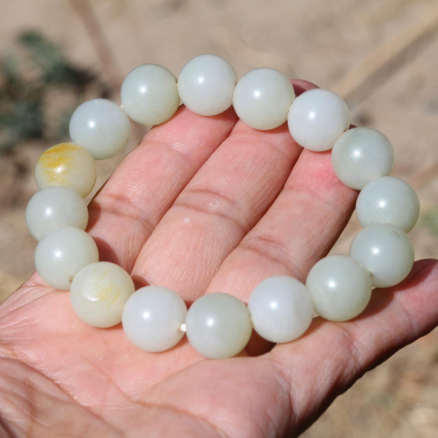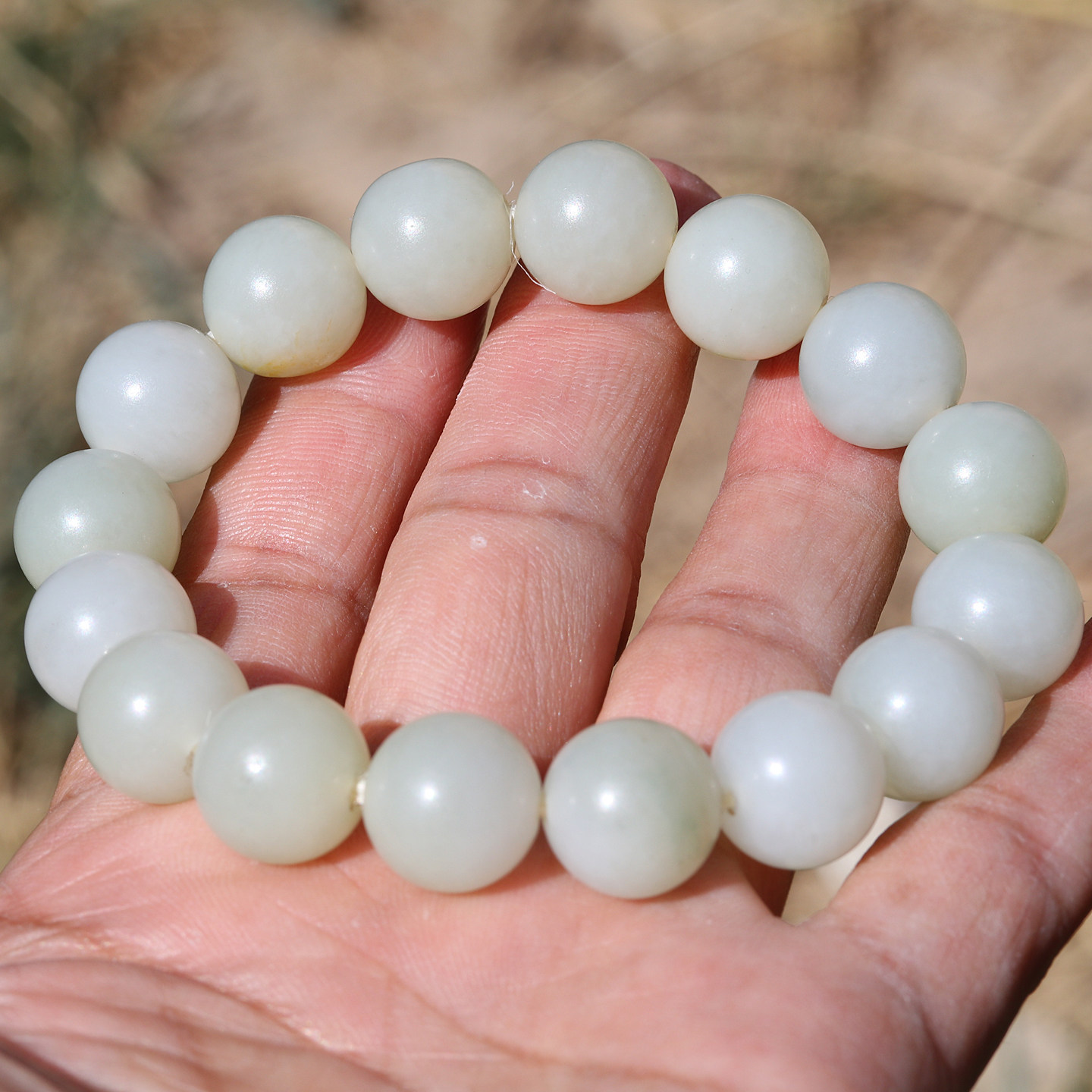 【小胡子玉器】和田玉 籽料 白玉 13mm圆珠 手串