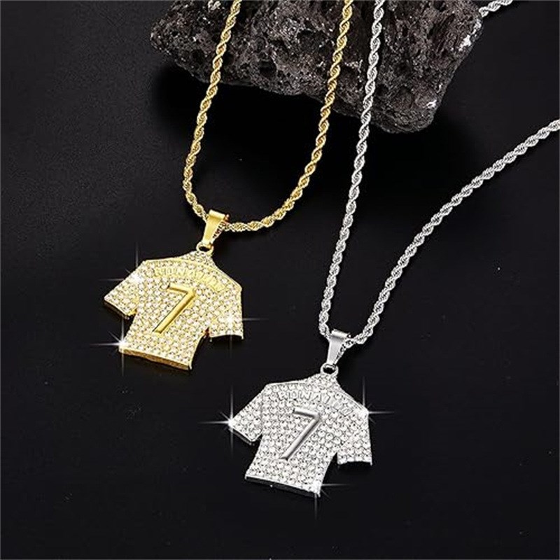 欧美爆款嘻哈HIPHOP饰品镀金镶钻C罗7号球衣吊坠项饰项链厂家