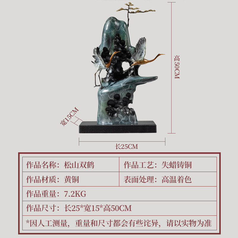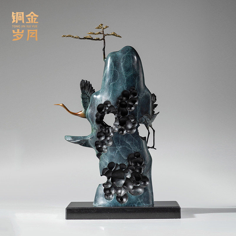 《松山双鹤》铜金岁月仙鹤黄铜摆件工艺品铜器新中式客厅玄关装饰