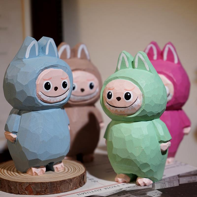 拉布布手工木雕小摆件可爱公仔卡通办公室桌面装饰品治愈系礼物