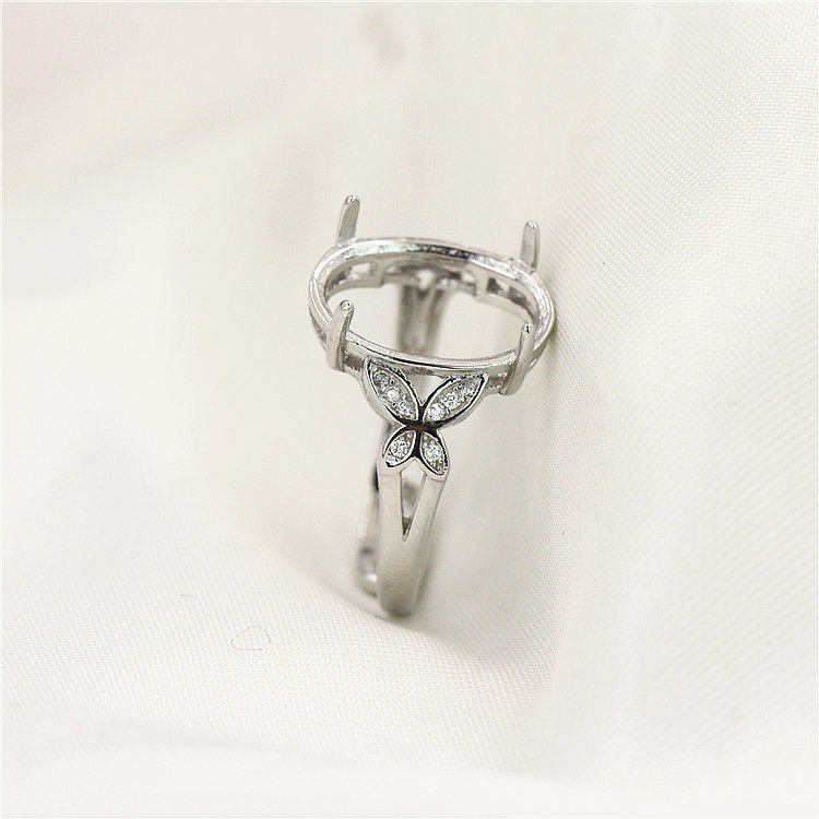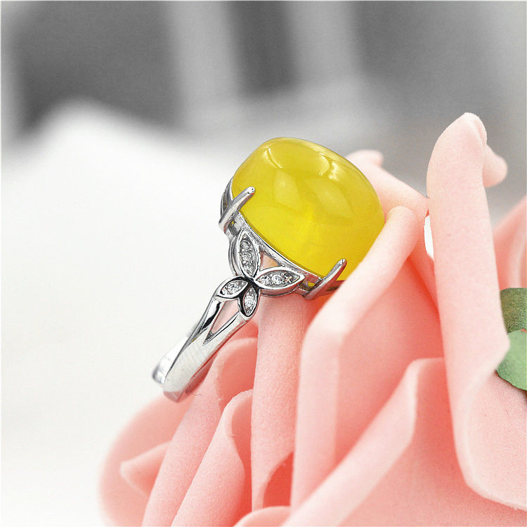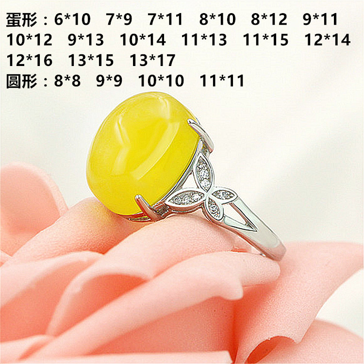 925纯银戒托女士戒指空托圆蛋形镶嵌蜜蜡翡翠托7*8*9*10*11*12*13