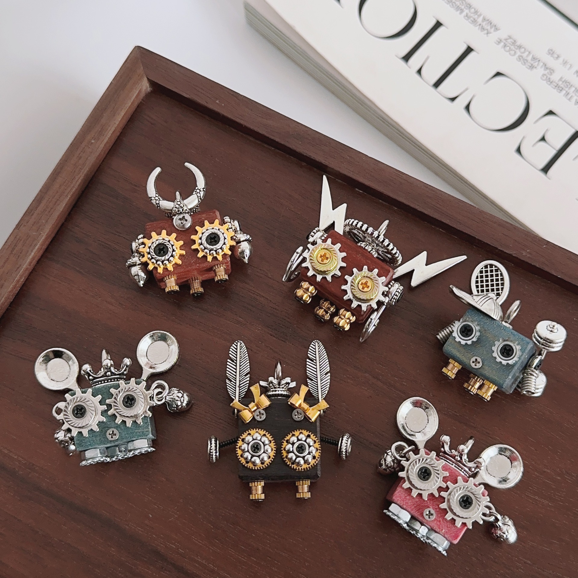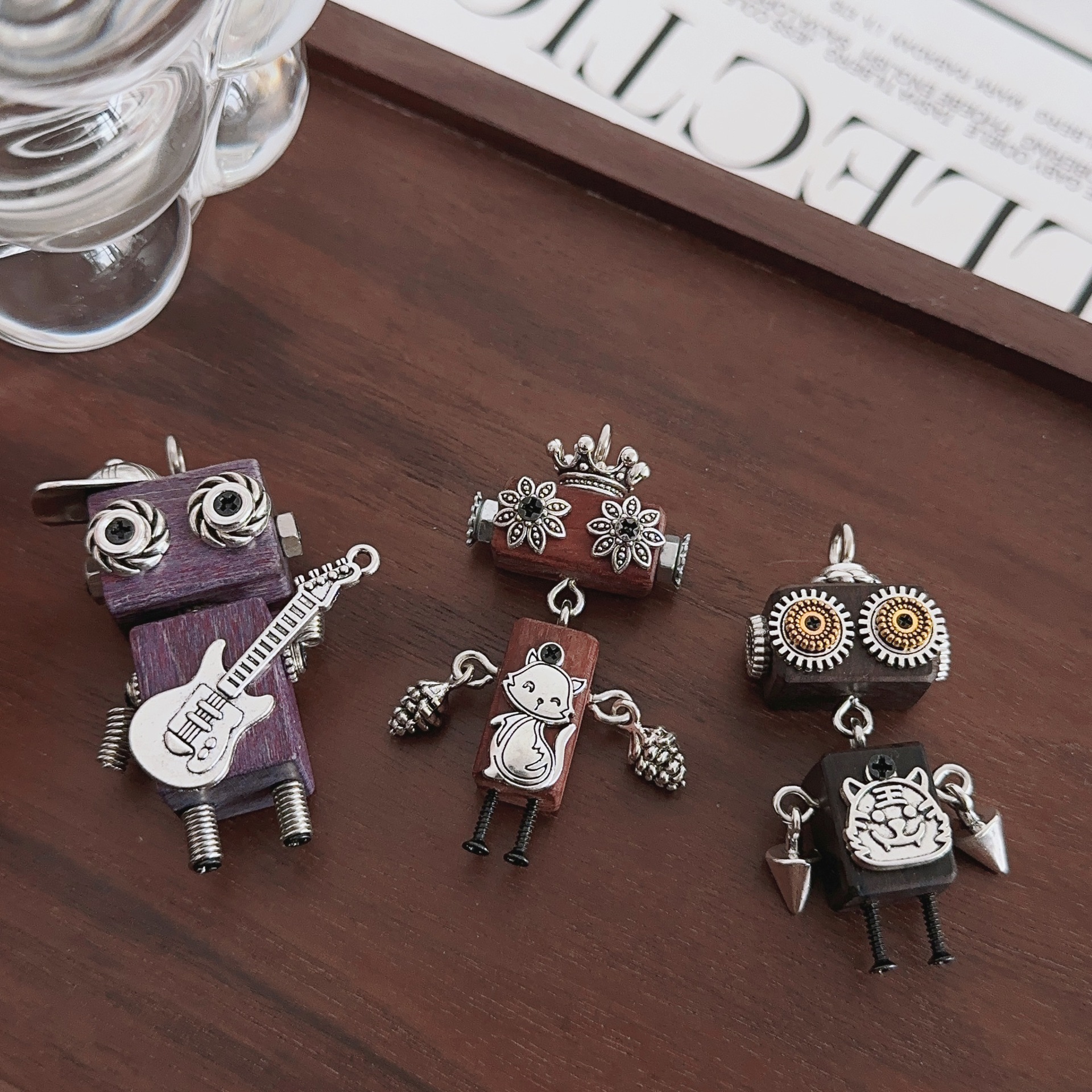 木艺朋克机器人吊坠摆件挂件潮酷设计感项链配件女生项链坠