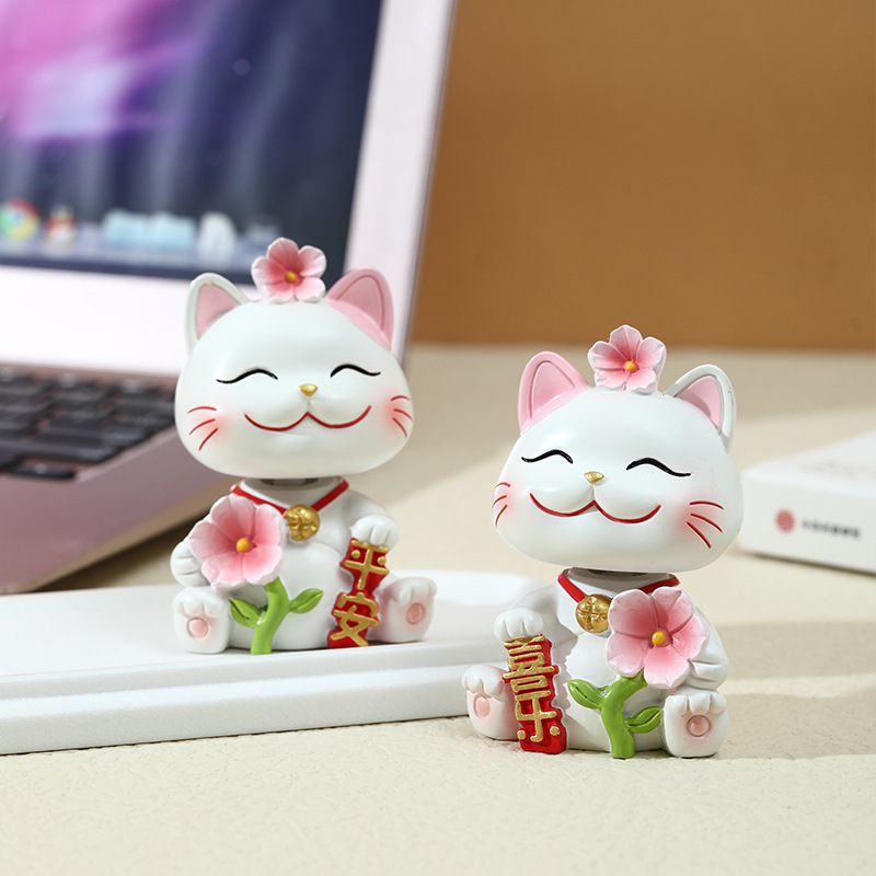 喜莱卡可爱摇头招财樱花猫摆件客厅创意家居装饰品桌面小摆设支架