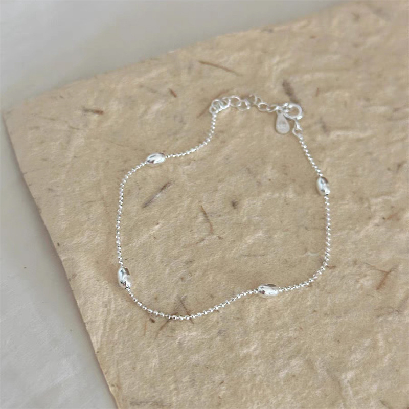 s925纯银米粒手链女韩版ins风小众设计橄榄圆珠手串新款2024新款