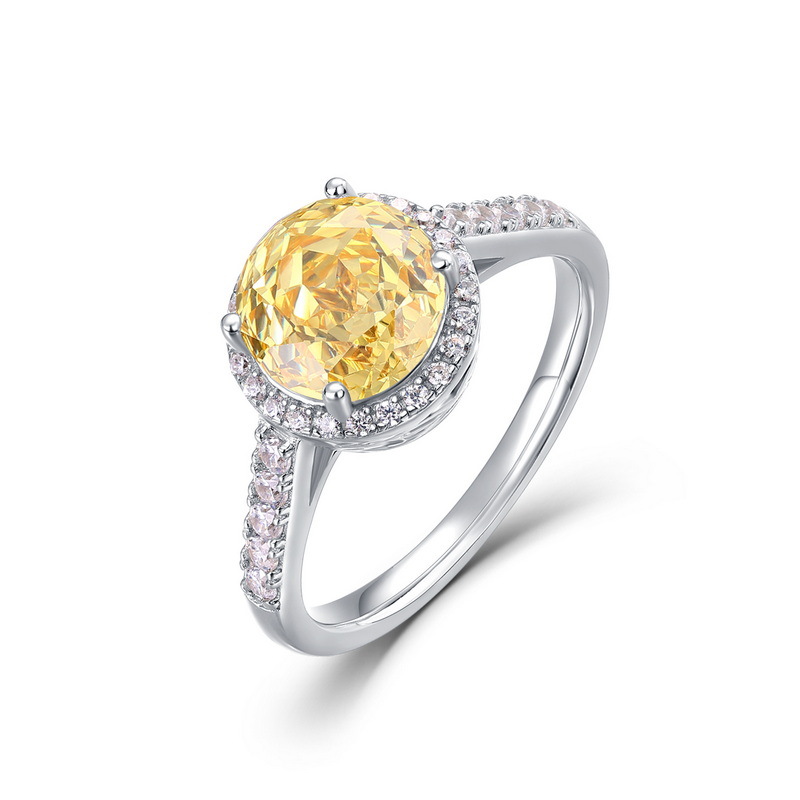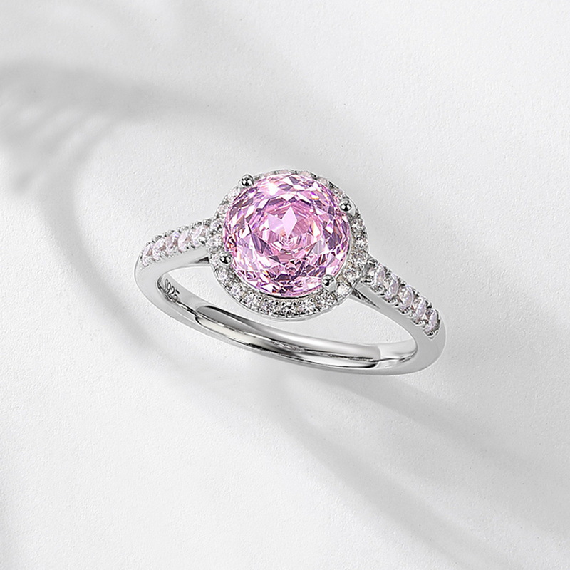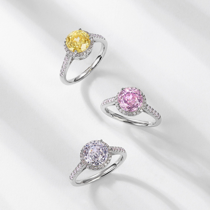 新款千禧玫瑰切彩锆宝石戒指S925银镀18K金围镶超闪彩宝指戒时尚