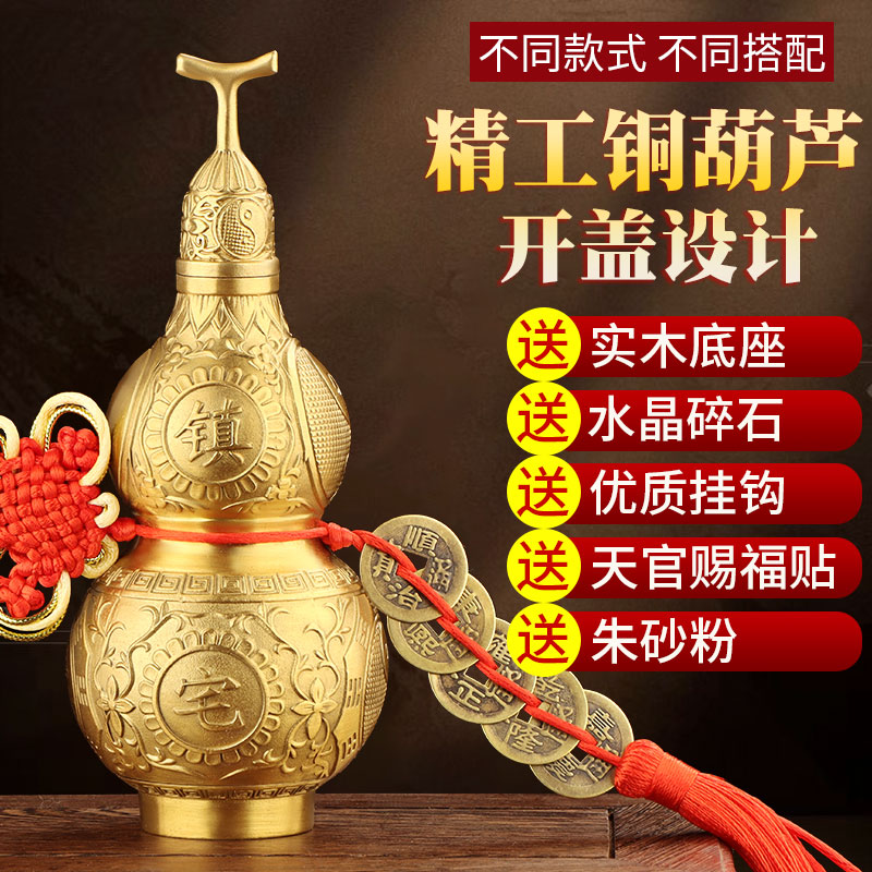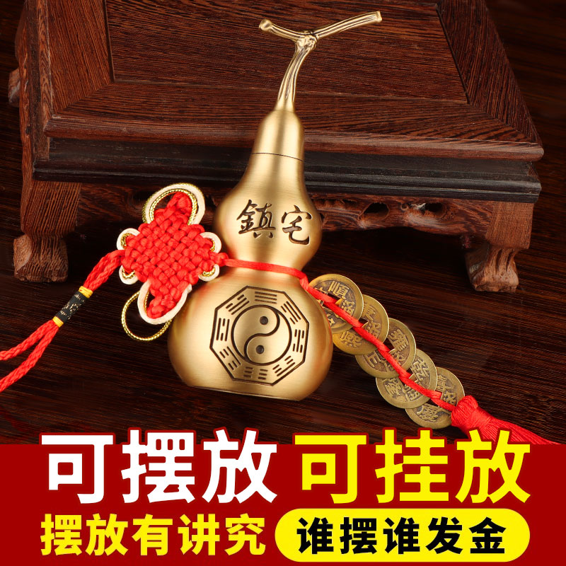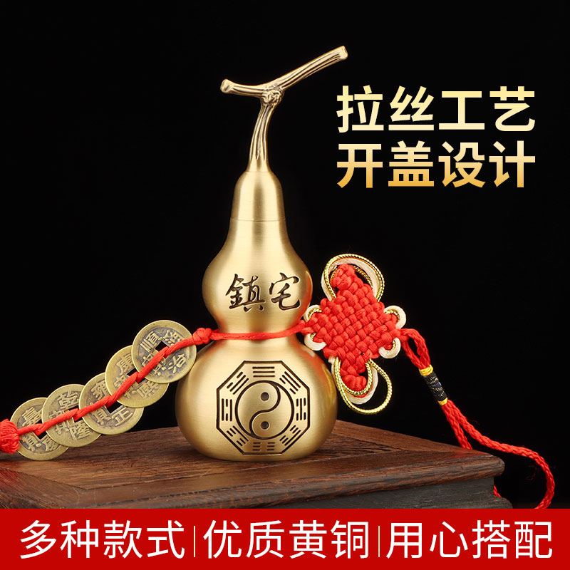 铜葫芦五帝钱挂件招纯黄铜财空心开口装朱砂门对门客厅工艺品摆件