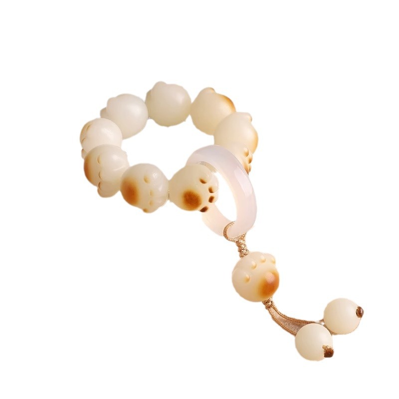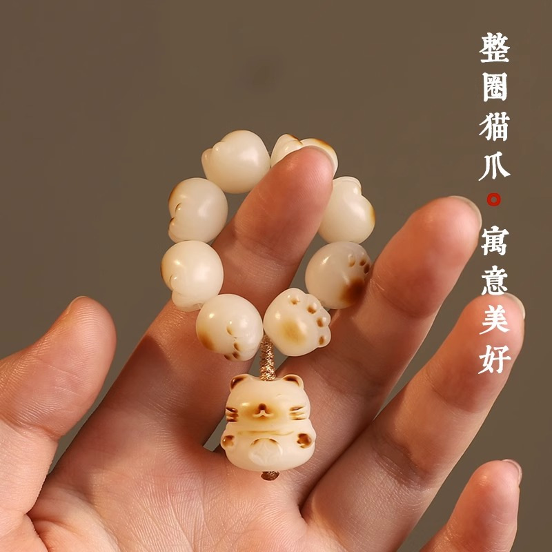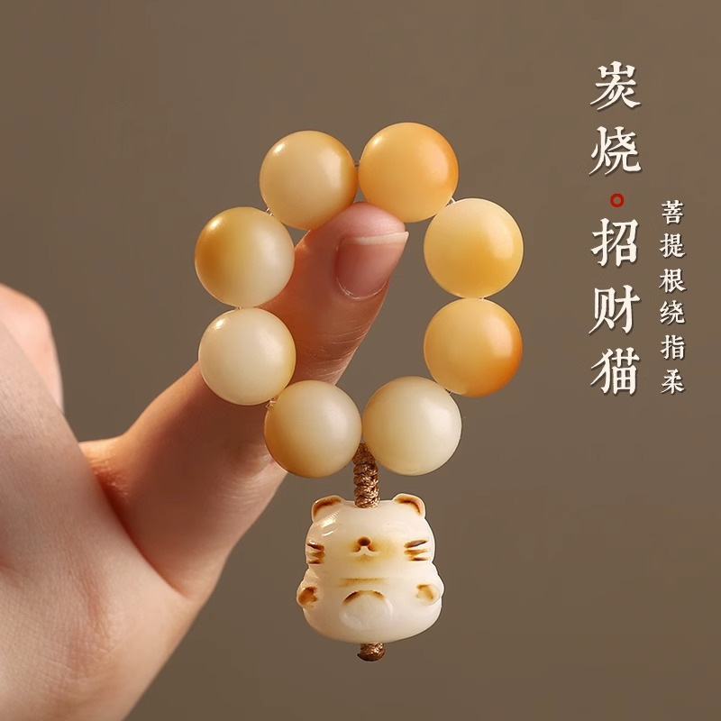 寺庙同款炭烧猫爪菩提手串指尖盘玩白玉菩提根绕指柔文玩小手捻女