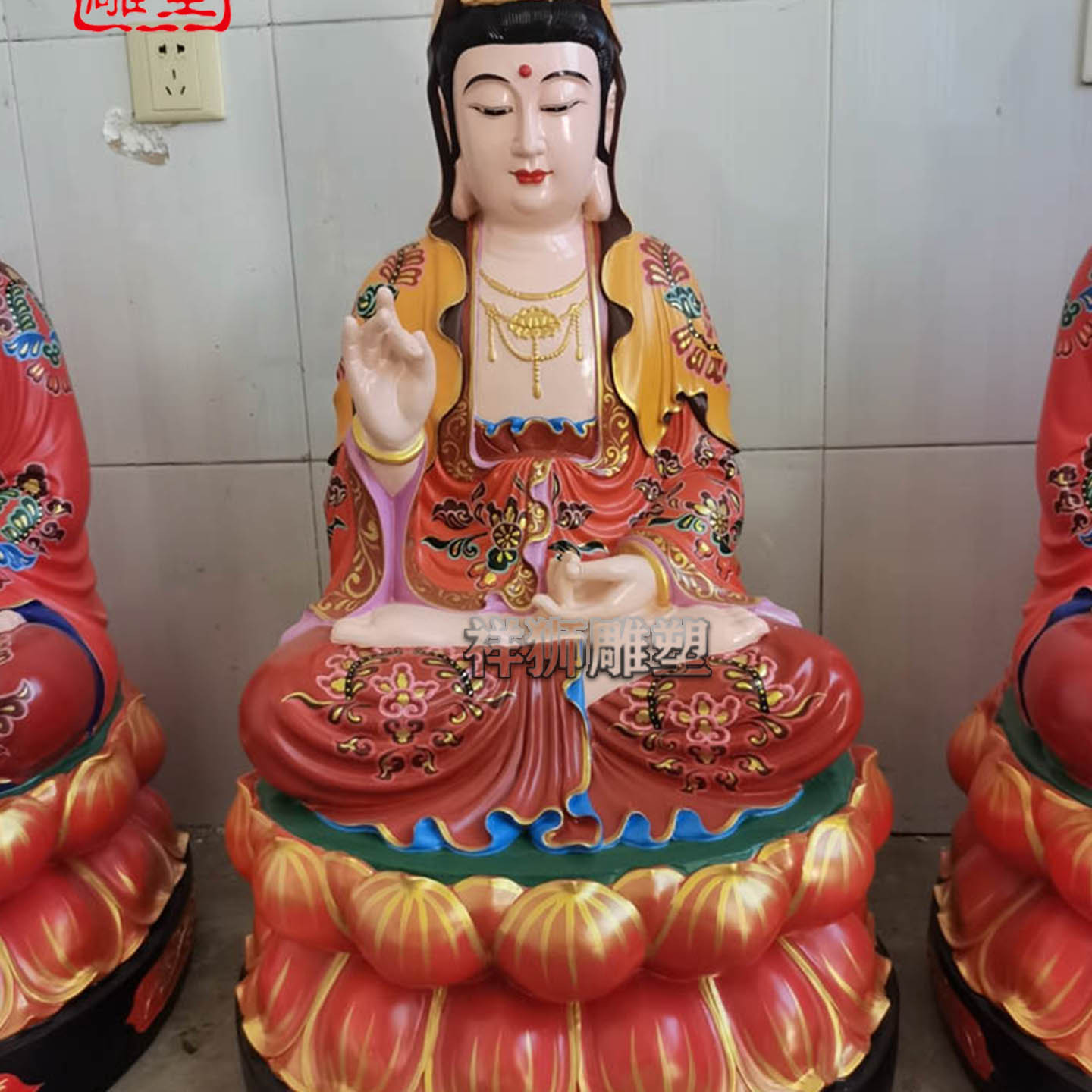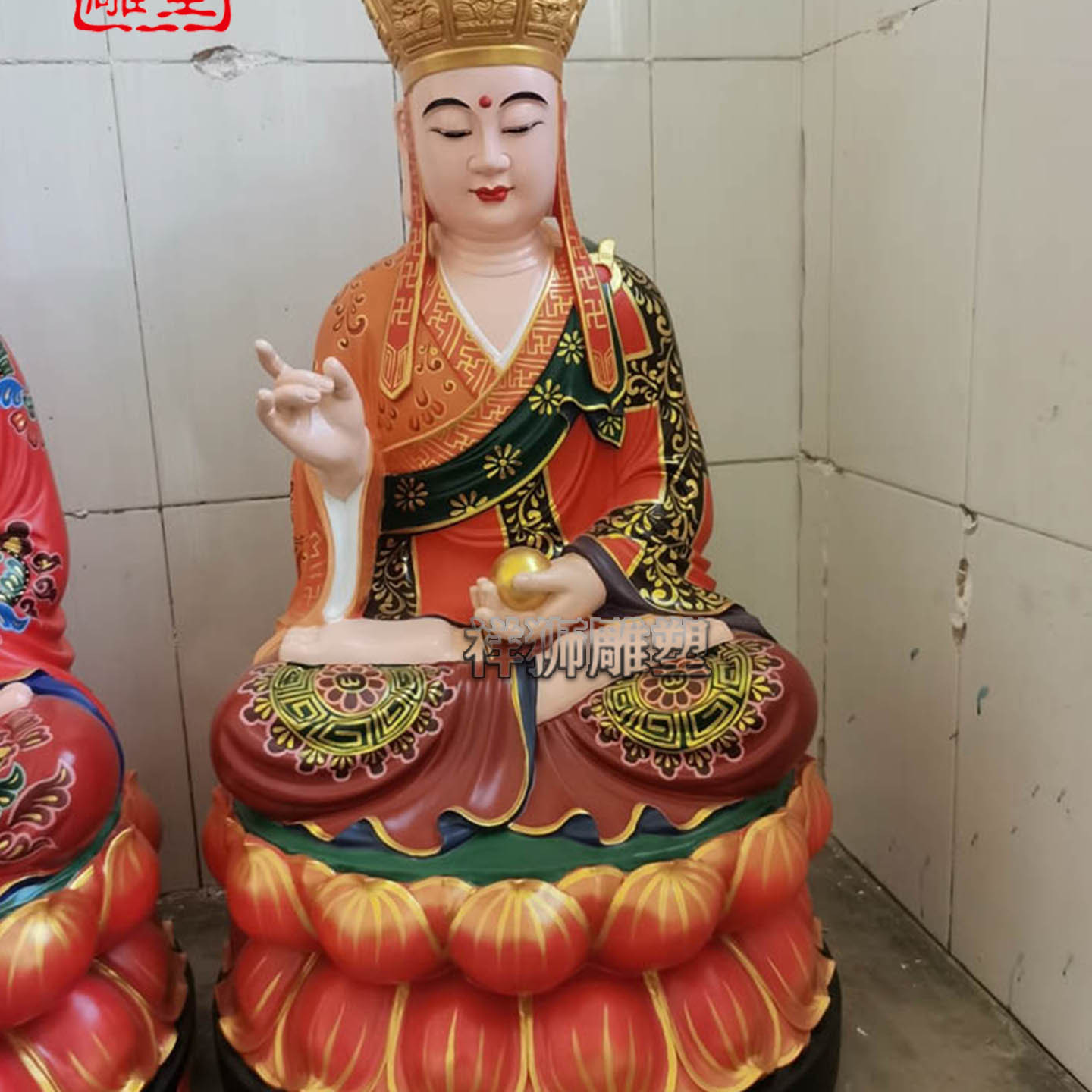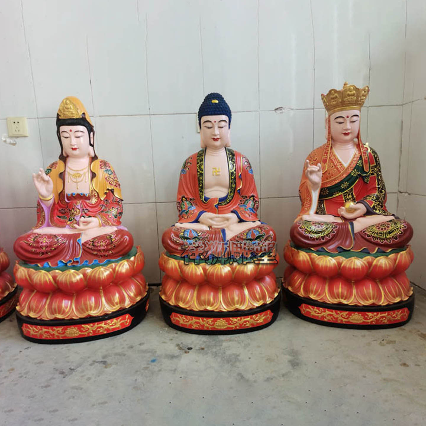 祥狮雕塑纯铜彩绘娑婆三圣佛像佛堂寺院供奉摆件定制厂家供应精工