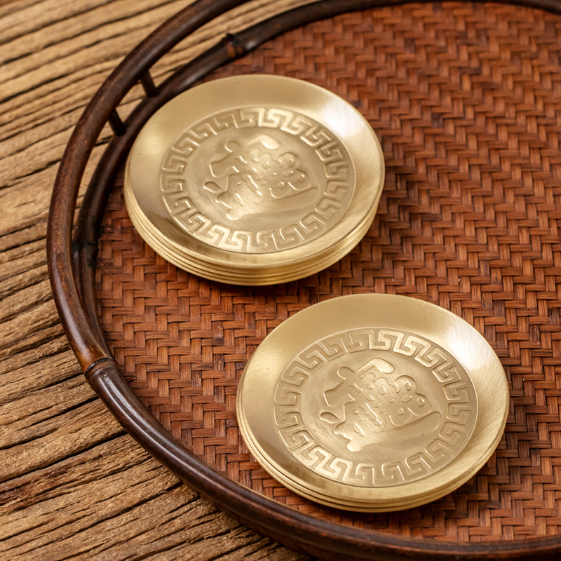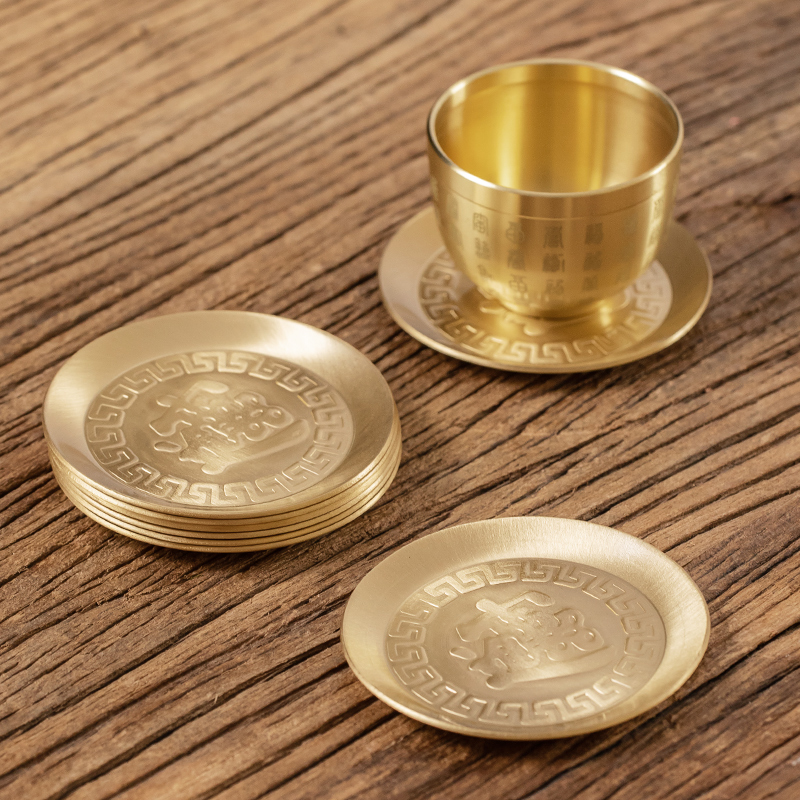 速发黄铜加厚招供水垫杯垫财神供托观音杯杯家用供奉茶酒杯垫创意