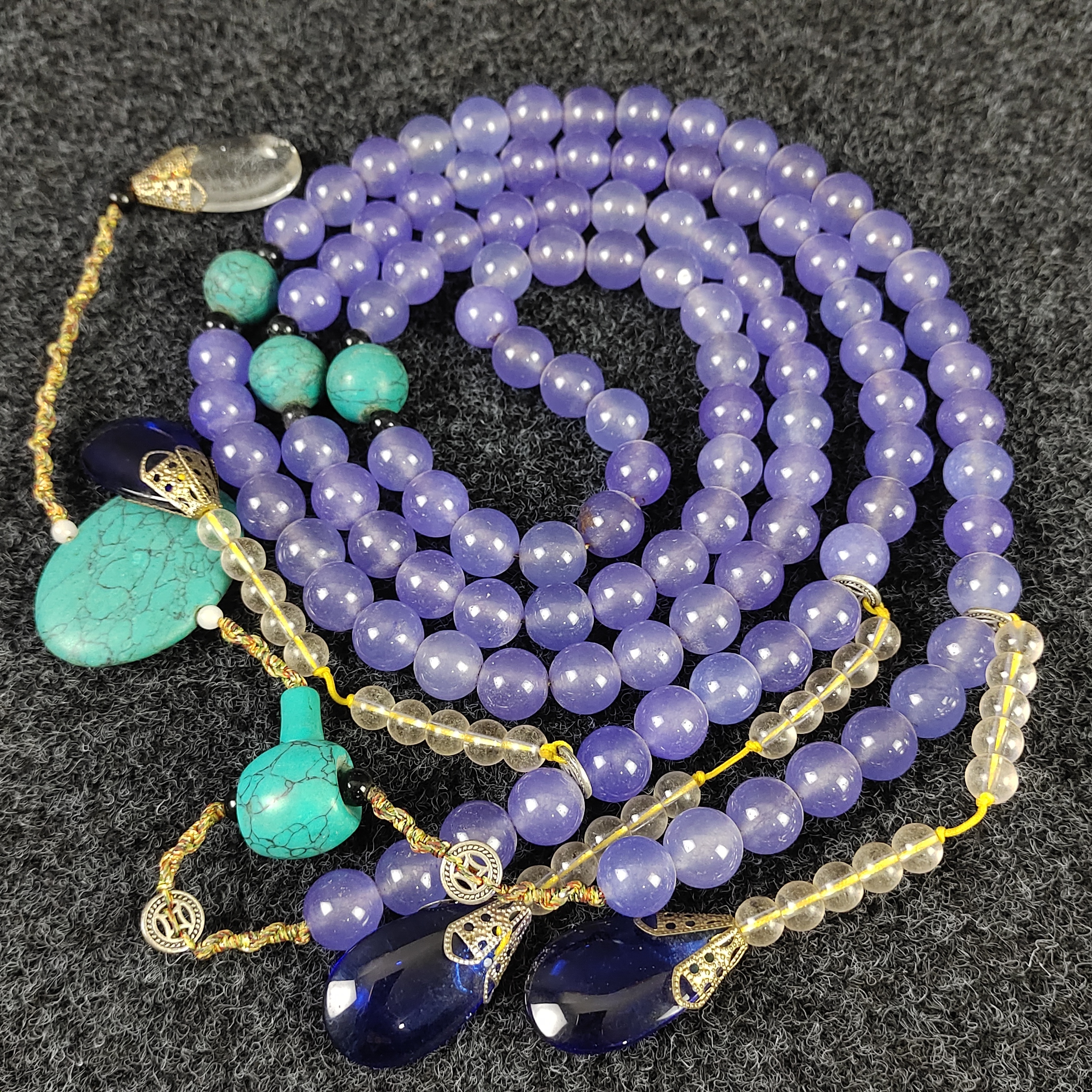 古董文玩乡下清代老冰种紫罗兰朝珠一条配老漆器盒108颗手串项链