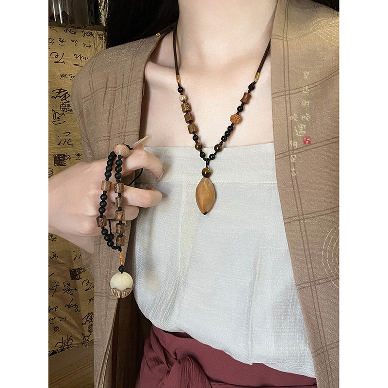 新中式菩提吊坠串珠项链女款2025新款秋冬长款毛衣链装饰挂绳配饰