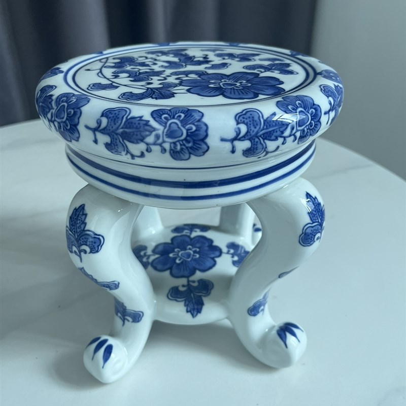 【花朵】青花瓷仿古典四脚古凳子客厅落地桌面摆件手绘底座