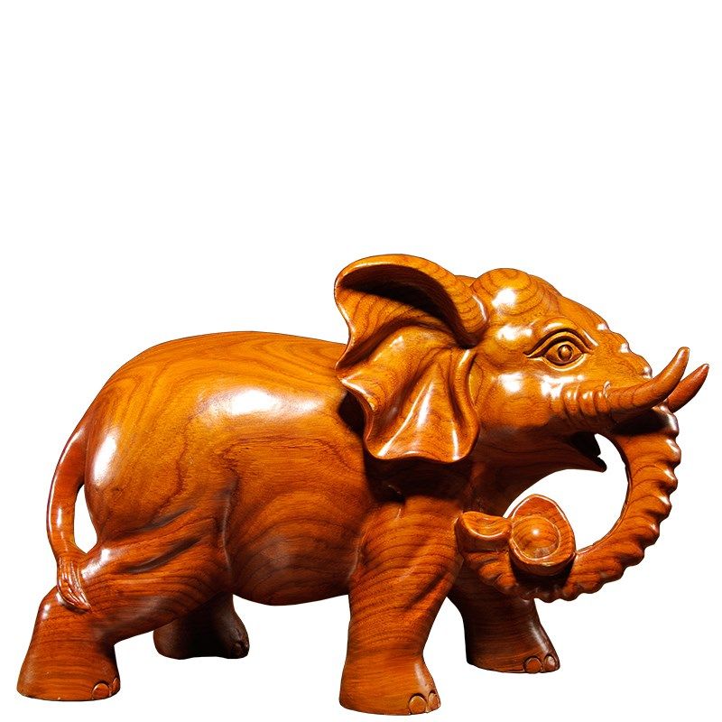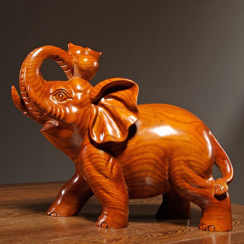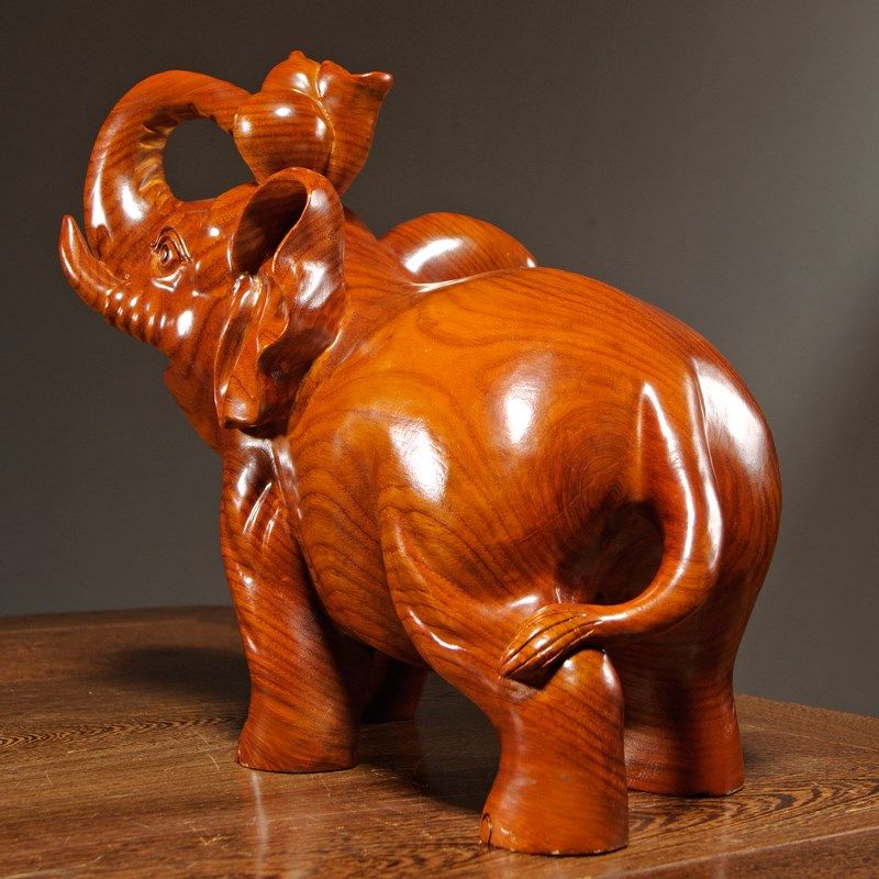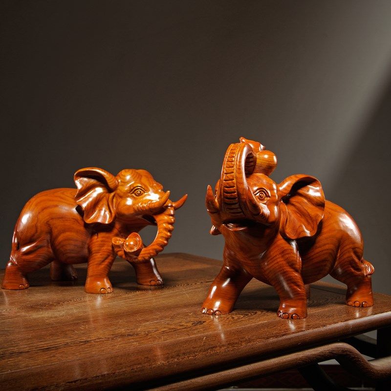 花梨木雕刻大象摆件是实木质一对象家居客厅玄关装饰红木工艺礼品
