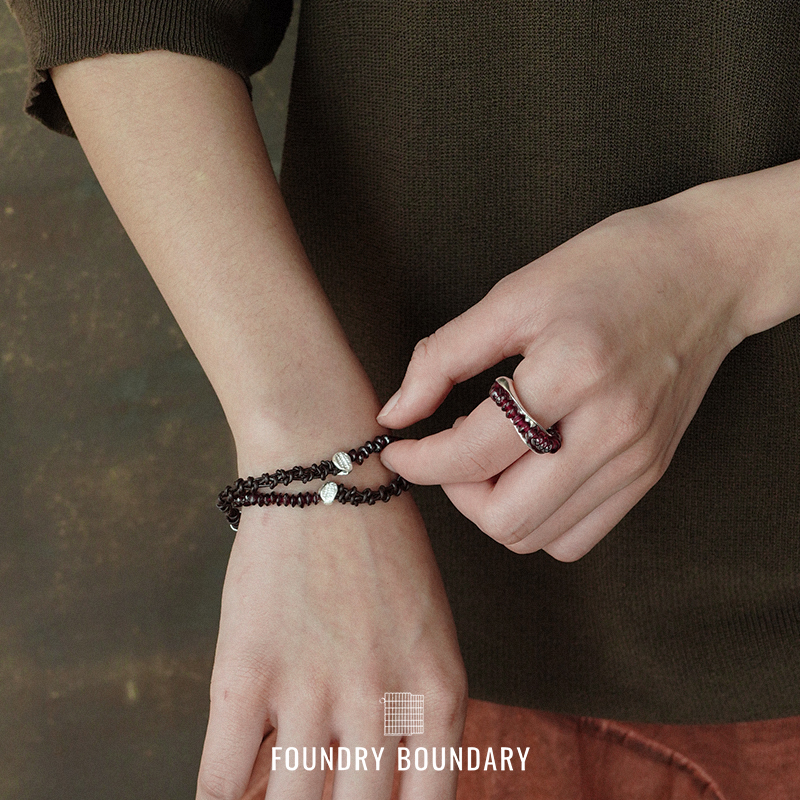 FOUNDRY BOUNDARY 石榴籽串珠戒指 纯银原创设计师开口戒 默叙