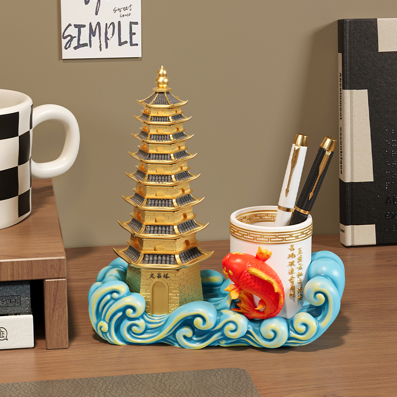步步高升文昌塔笔筒办公室工位桌面收纳好物装饰摆件轻奢高档客厅