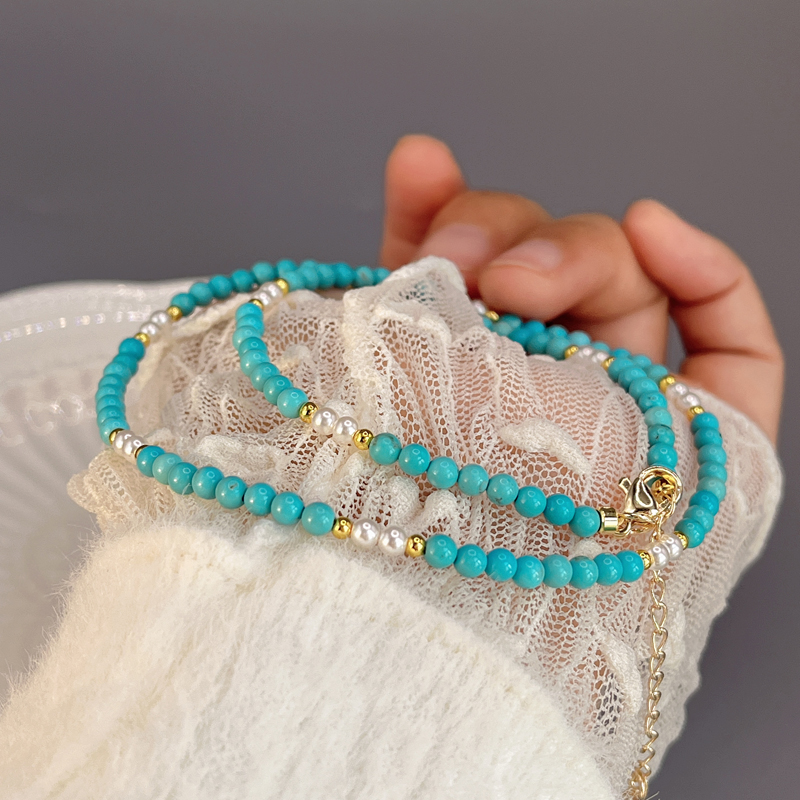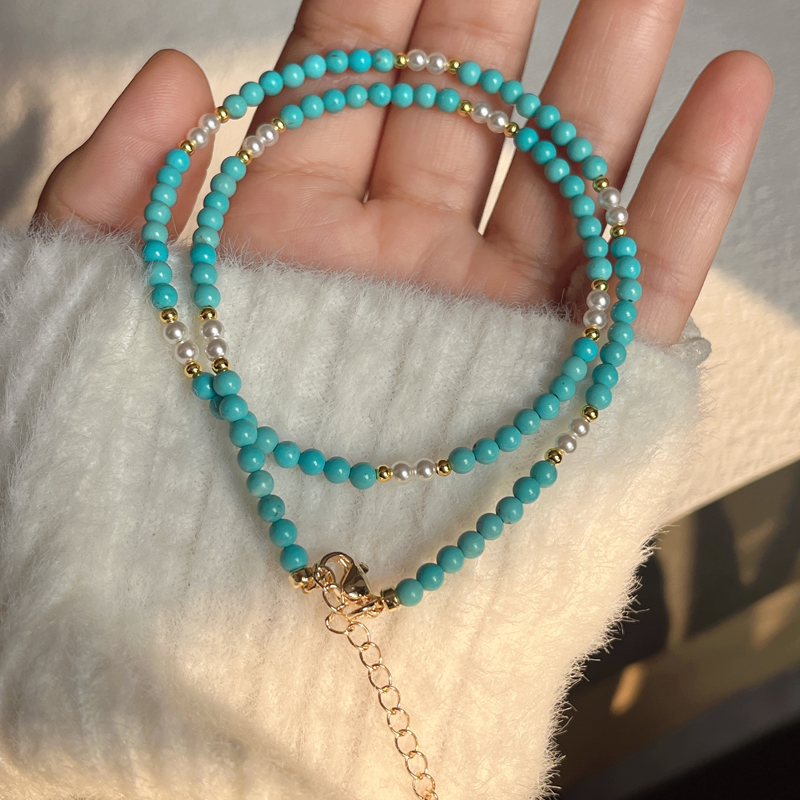 天然绿松石项链高瓷蓝料颈链轻奢小众高级感圆珠珍珠饰品闺蜜礼物