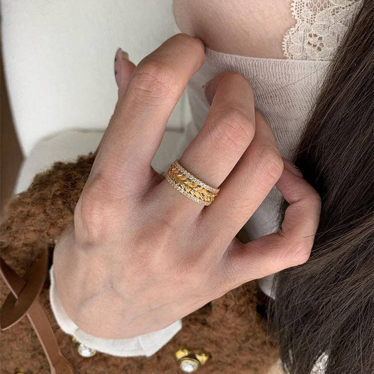 法式复古璀璨星河穗穗平安戒指ins轻奢中古风满钻锻造麦穗纹女戒