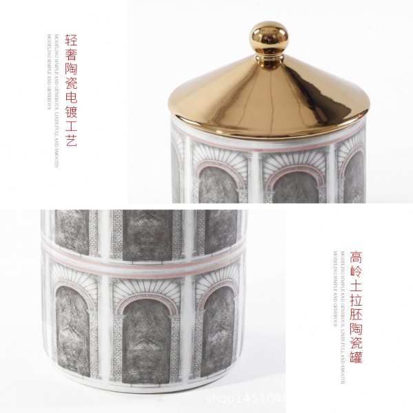 现轻奢建筑图案陶瓷子样板房客厅玄关售楼部软装饰品电镀摆件