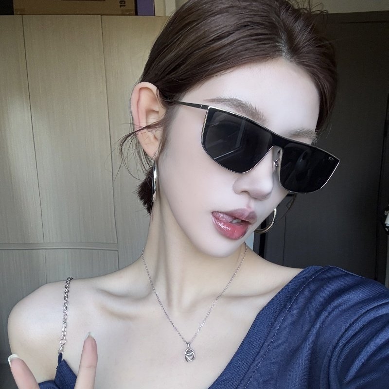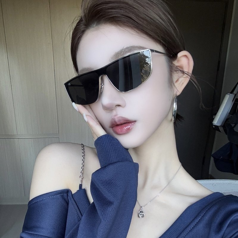 金属银框灰色连一体式太阳眼镜护目高级感2025方圆脸显瘦拍照墨镜