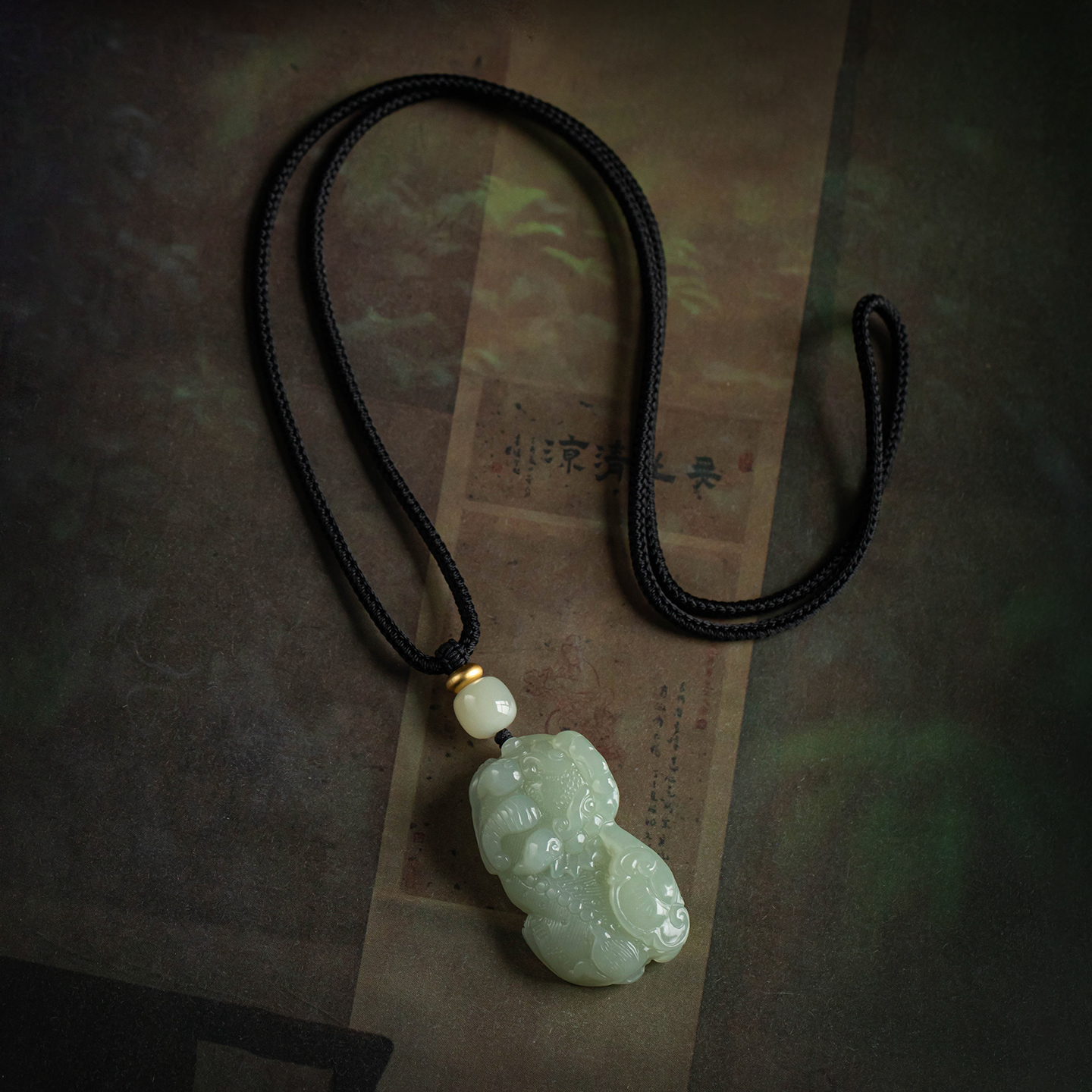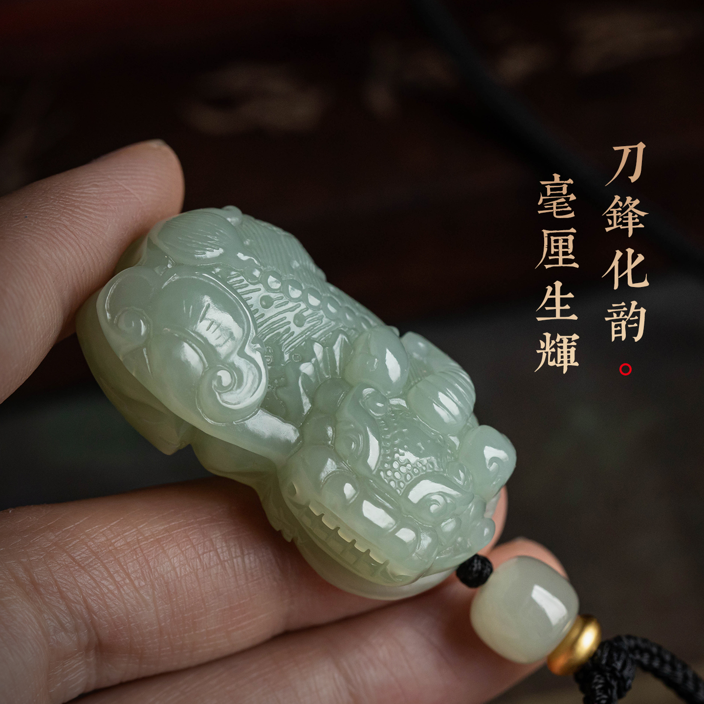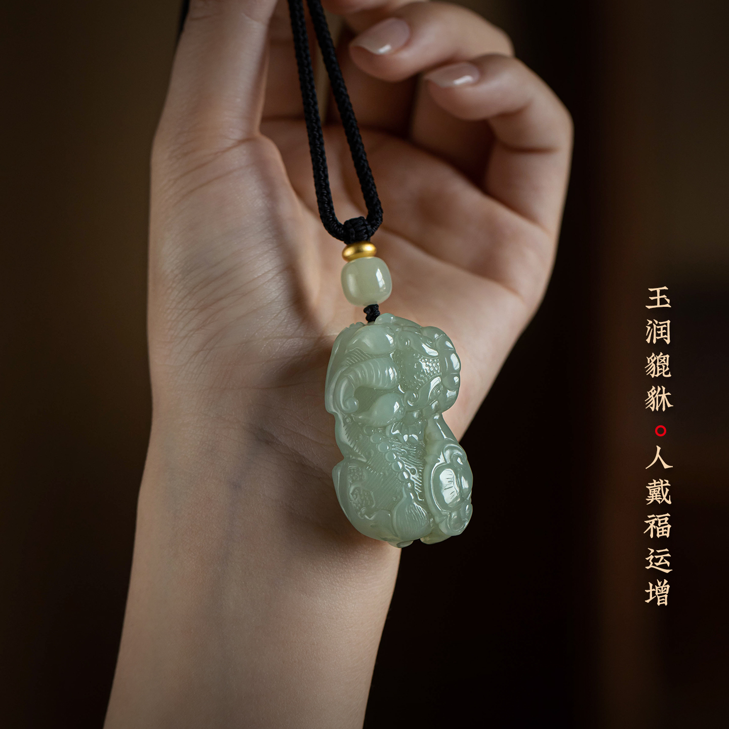 【孤品】守财貔貅天然和田玉吊坠项链精致雕刻饰品转运礼物男女