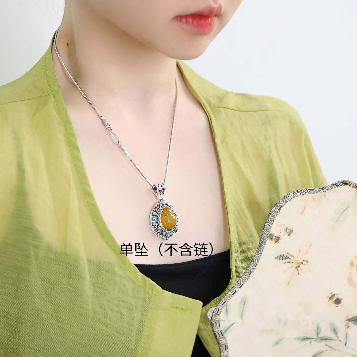 925银玉髓吊坠民族风水滴轻奢高级珐琅小众设计单坠项链女DIY配件