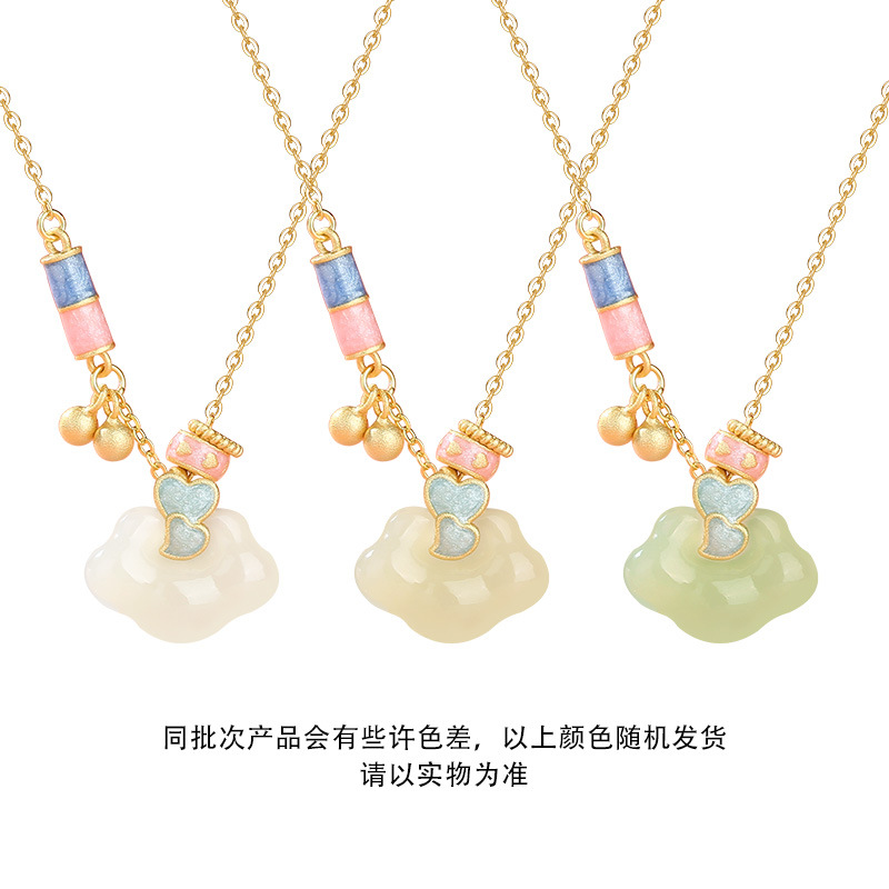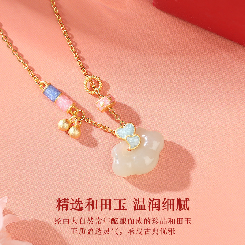 新中式天然和田玉心寄如意锁项链女创意设计s925银爱心珐琅锁骨链