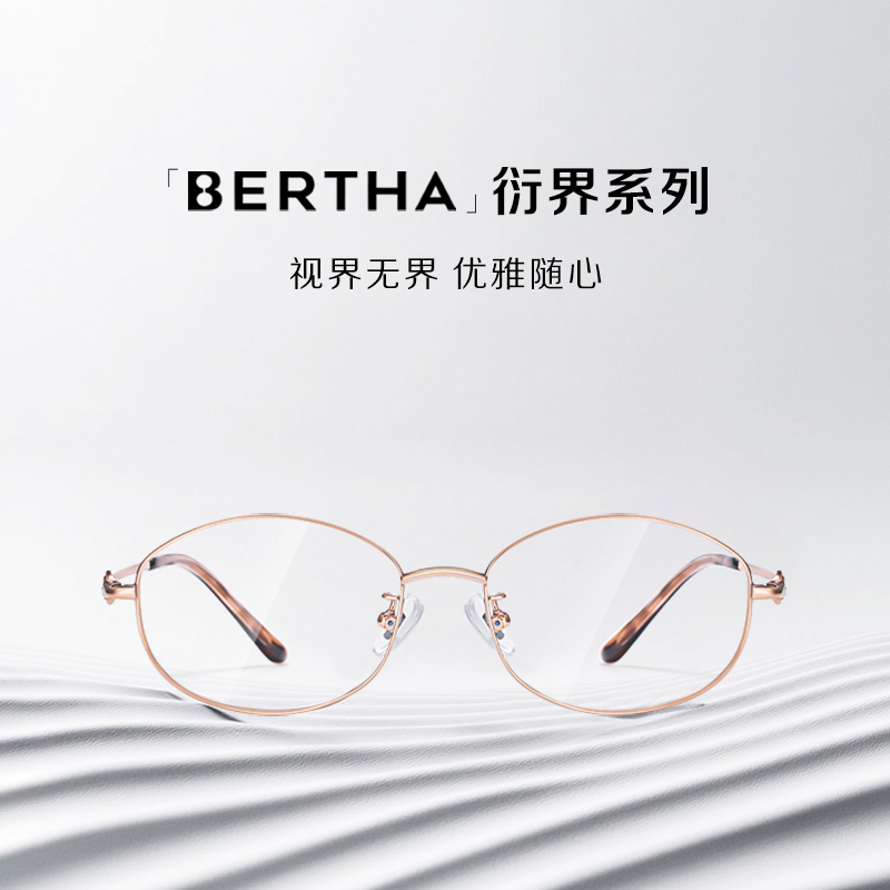 BERTHA女士眼镜近视女度数可配防蓝光通勤素颜椭圆金丝纯钛架1399