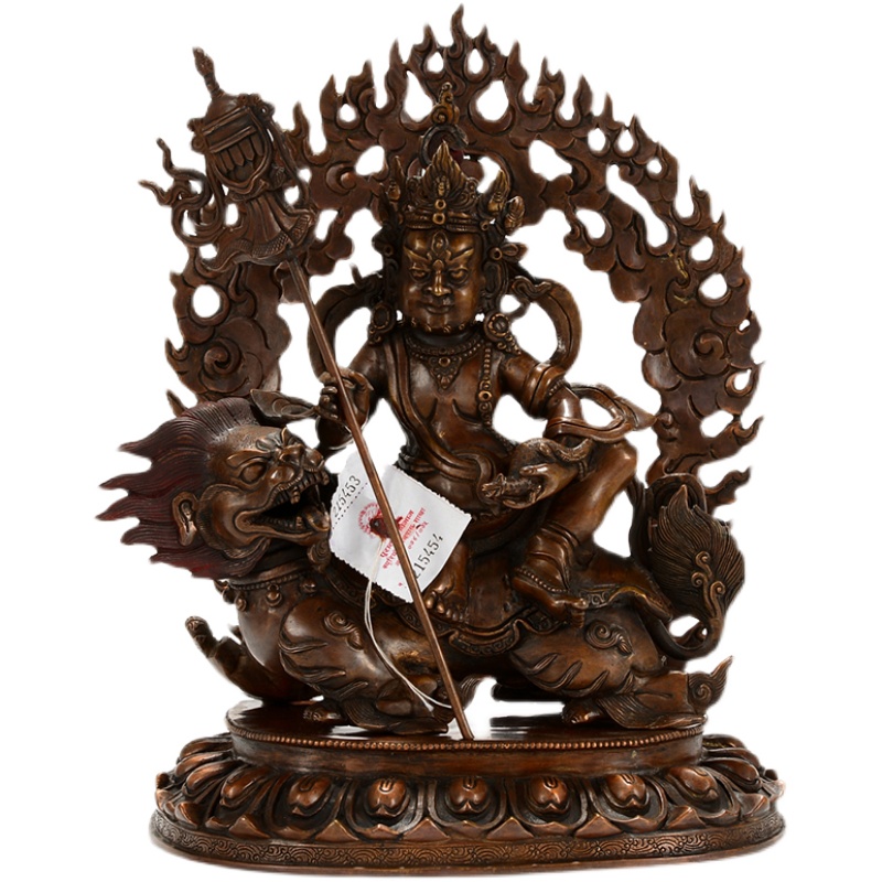 《财宝天王》尼泊尔手工铜像古铜雕花带背光居家桌面摆件10寸