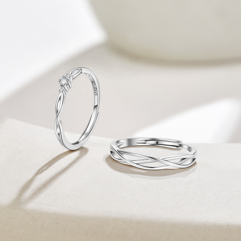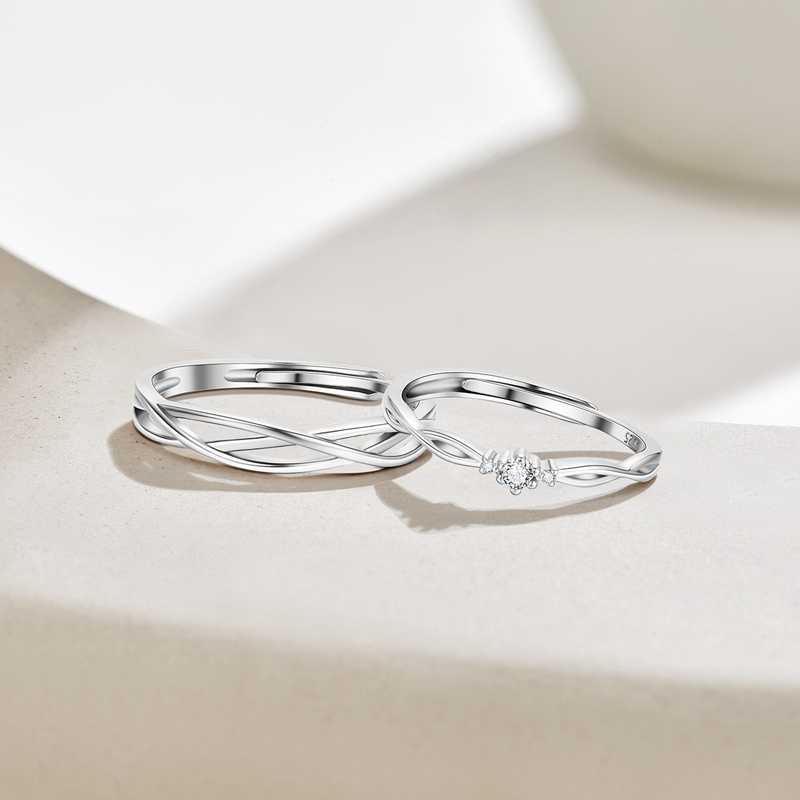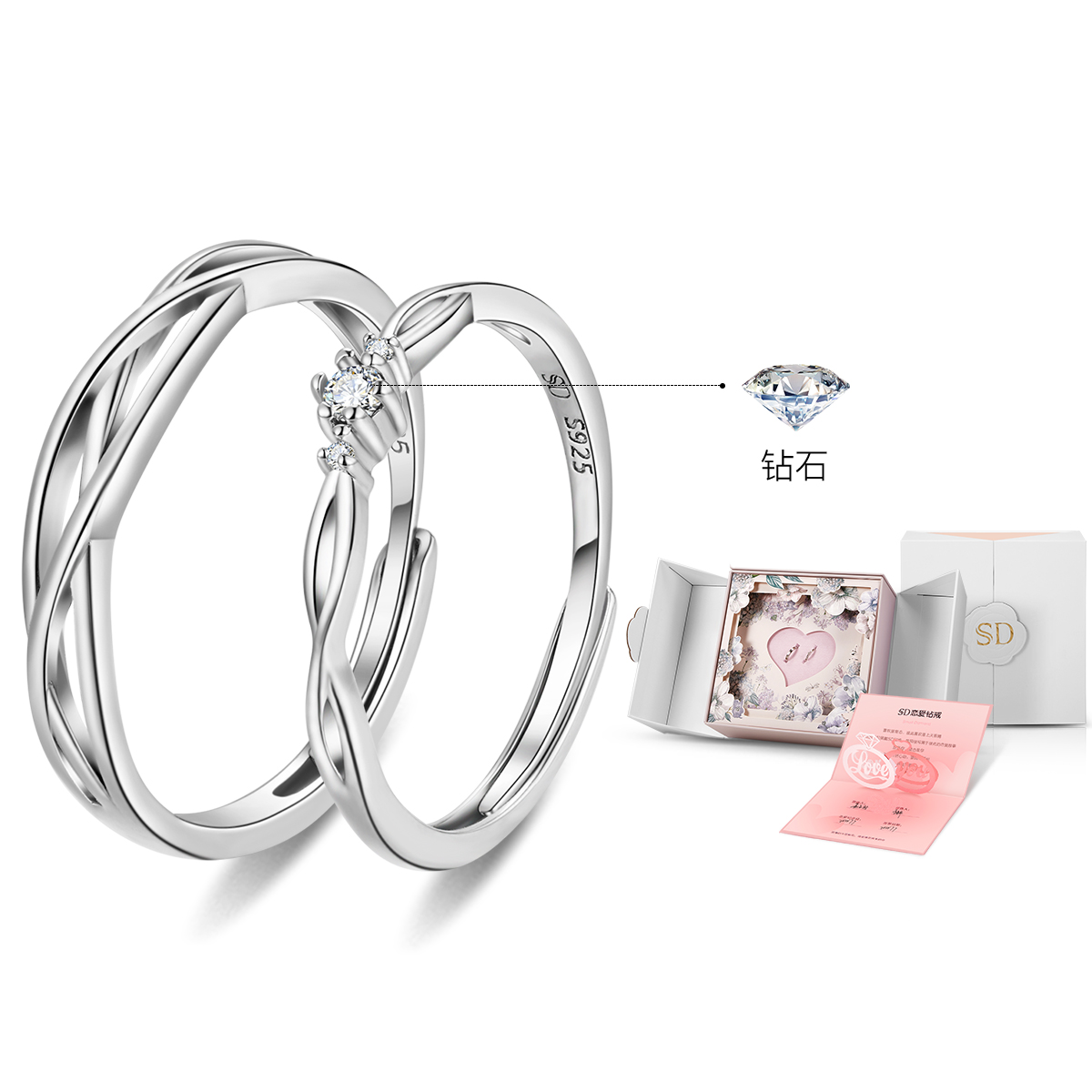 SD情侣戒指一对绾青丝对戒S925银情侣钻石开口戒指活口节日送男友
