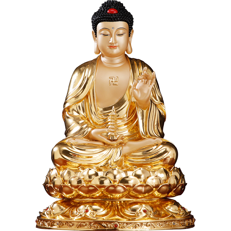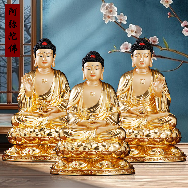 纯铜手工贴金释迦牟尼佛像三宝佛药师佛阿弥陀佛佛像大型如来佛
