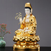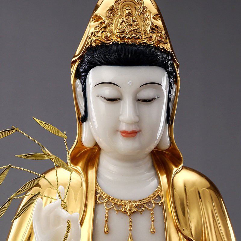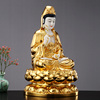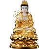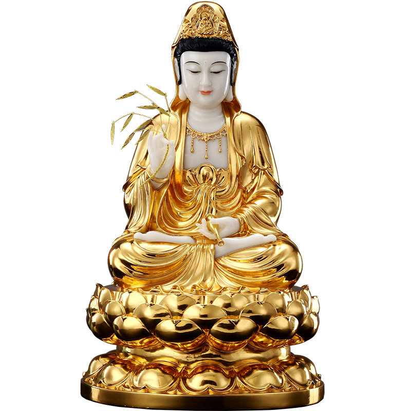 秦歌汉白玉手工贴金观音佛像家用坐莲观世音菩萨娑婆三圣摆件客厅