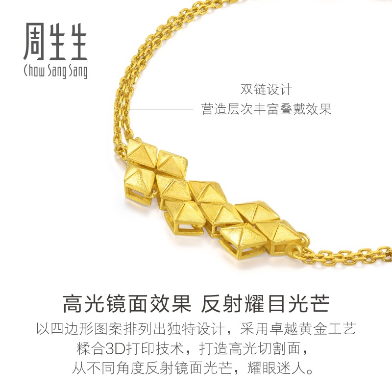 周生生珠宝饰品黄金足金gin方块金双链手链95512B计价