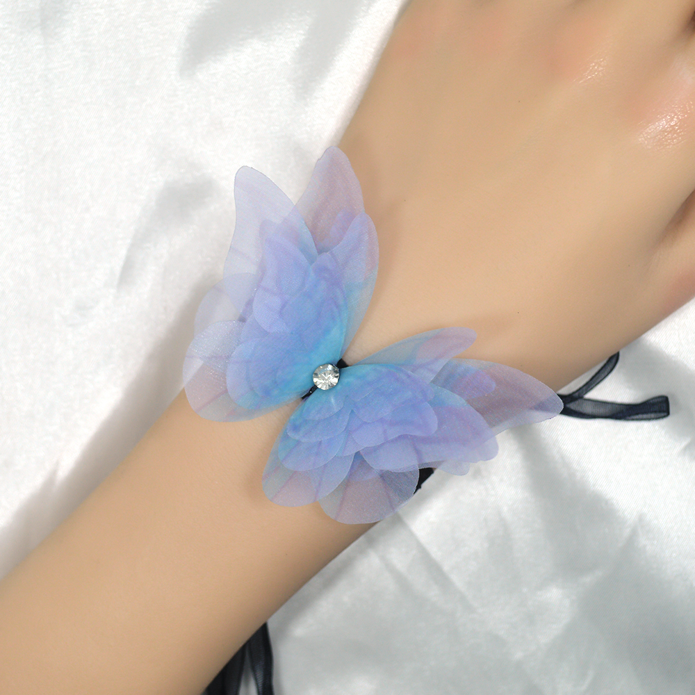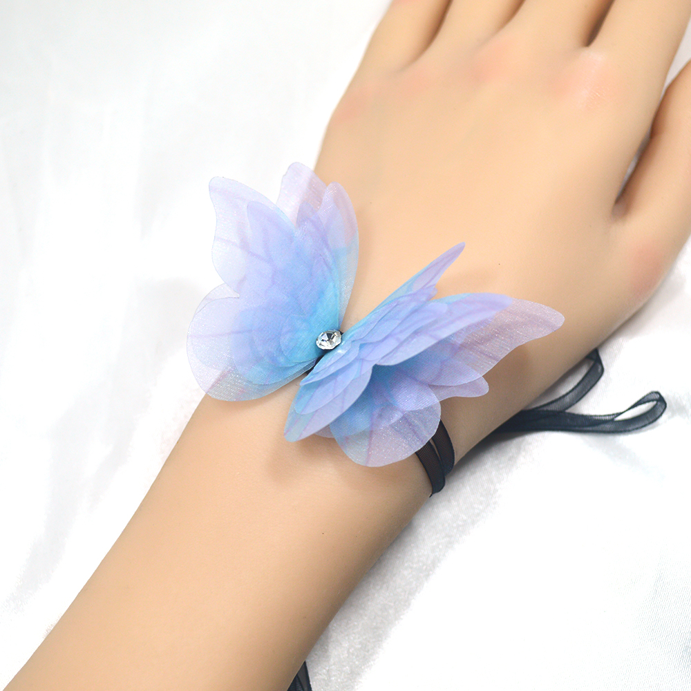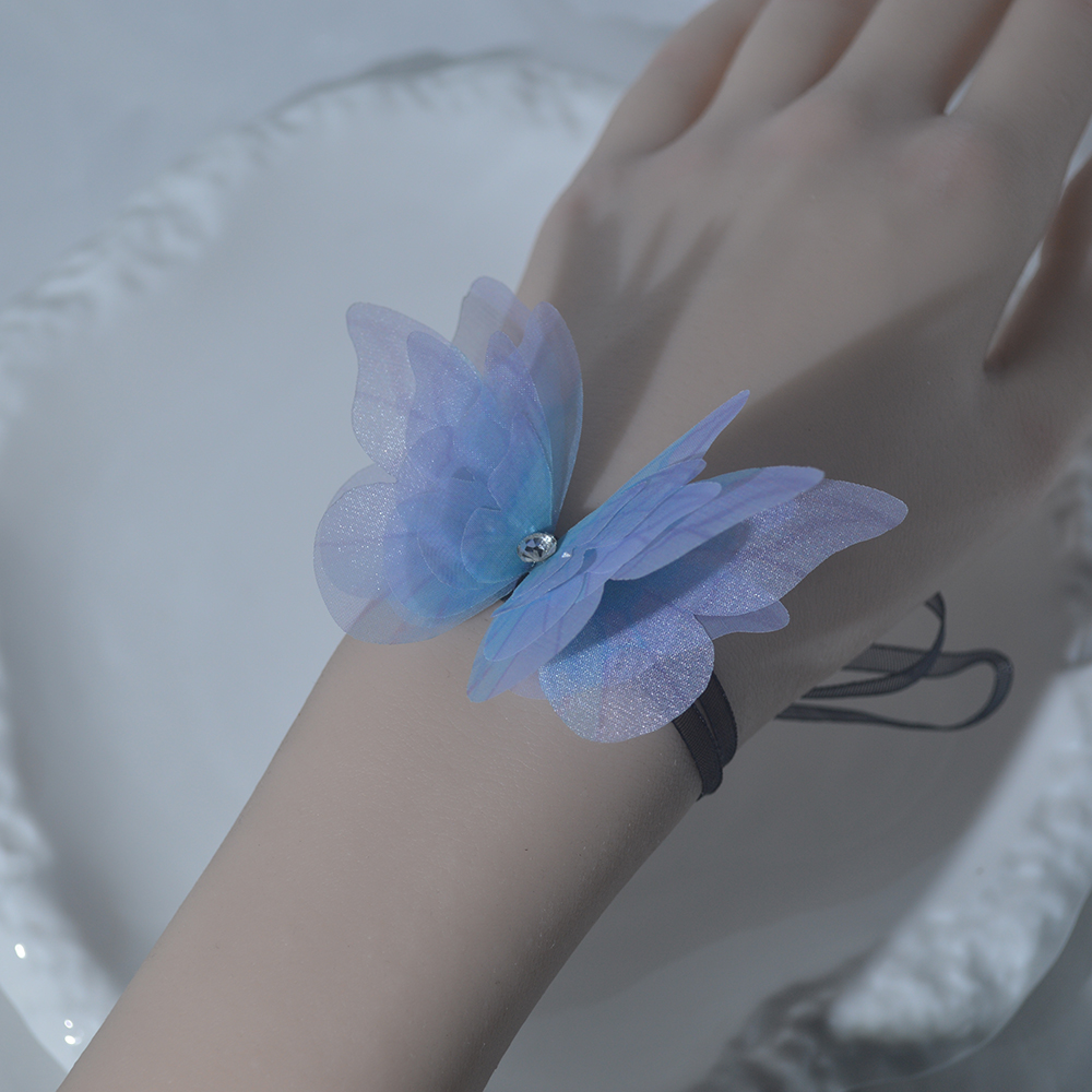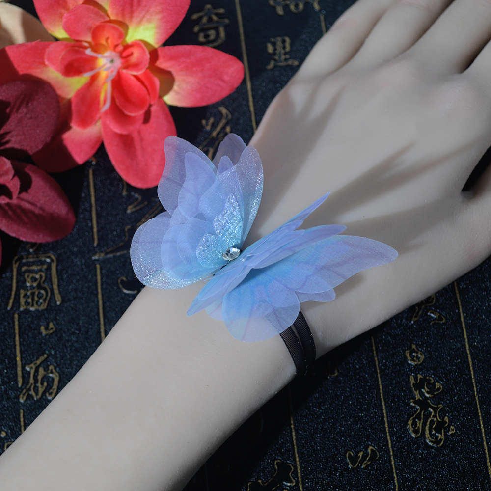2025蕾丝中国风复古手工舞蹈表演小众设计蓝蝴蝶手链甜美手带手绳