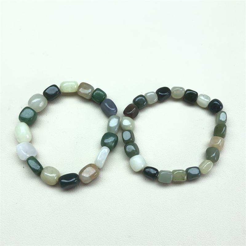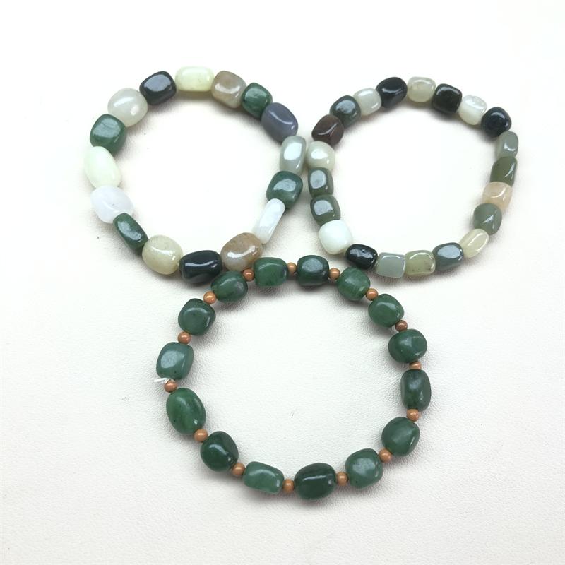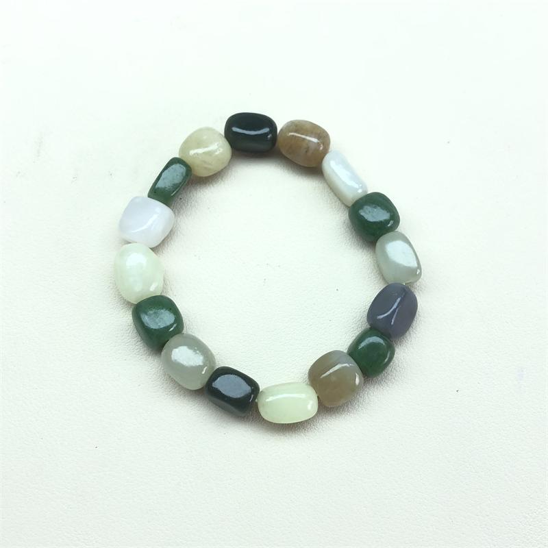 天然和田玉随形小石头单圈手链 女款和田玉多宝手串烟紫料黄口串